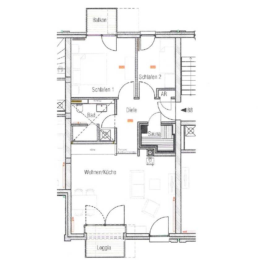 Zudem befindet sich in der Wohnung eine gemütliche finnische Sauna aus hellem Fichtenholz.