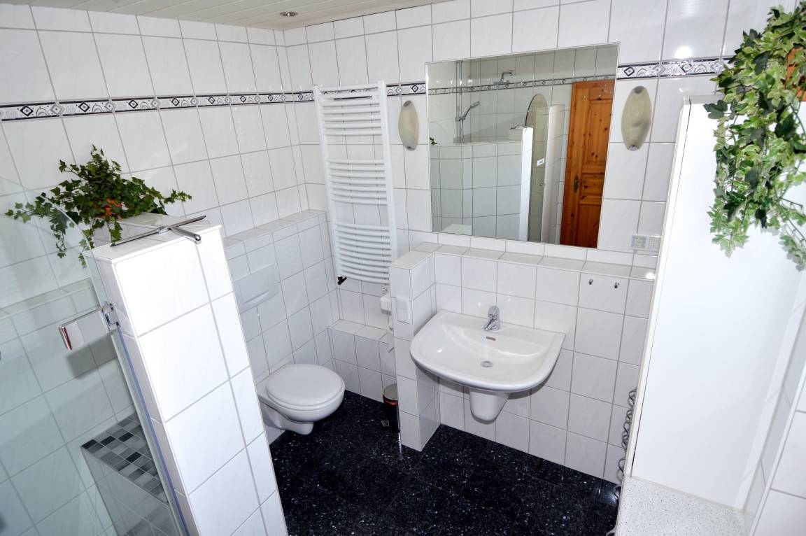 Direkt angrenzend liegt die Küche, ausgestattet mit Cerankochfeld, Backofen, Geschirrspüler und Waschmaschine. Die rustikale Sitzecke lädt zu gemeinsamen Mahlzeiten ein und bietet Zugang zum Balkon, auf dem Sie entspannte Stunden an der frischen Luft genießen können. Das Duschbad mit WC befindet sich ebenfalls auf dieser Etage.