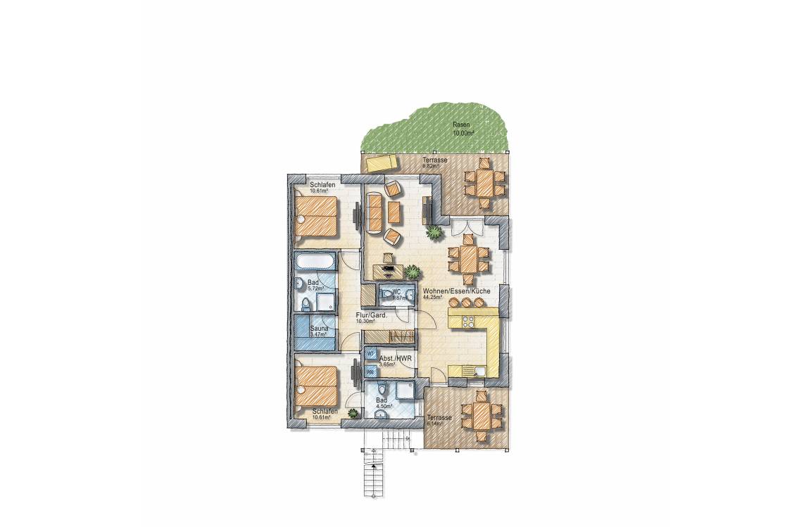 100 m² Ferienwohnung ∙ 2 Schlafzimmer ∙ 6 Gäste