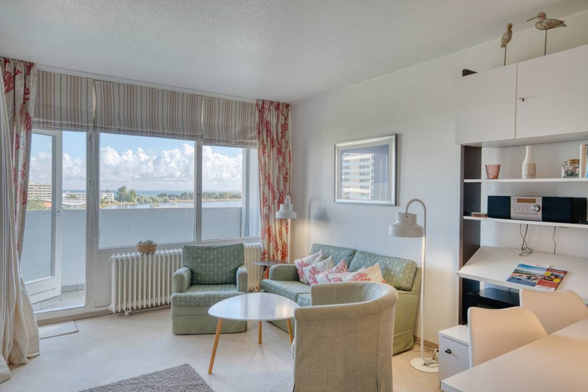 Die Wohnung liegt im Haus L Ferienpark, in der 5. Etage, mit Balkon zum Innenhof, der einen schönen Blick auf den Binnensee bietet.