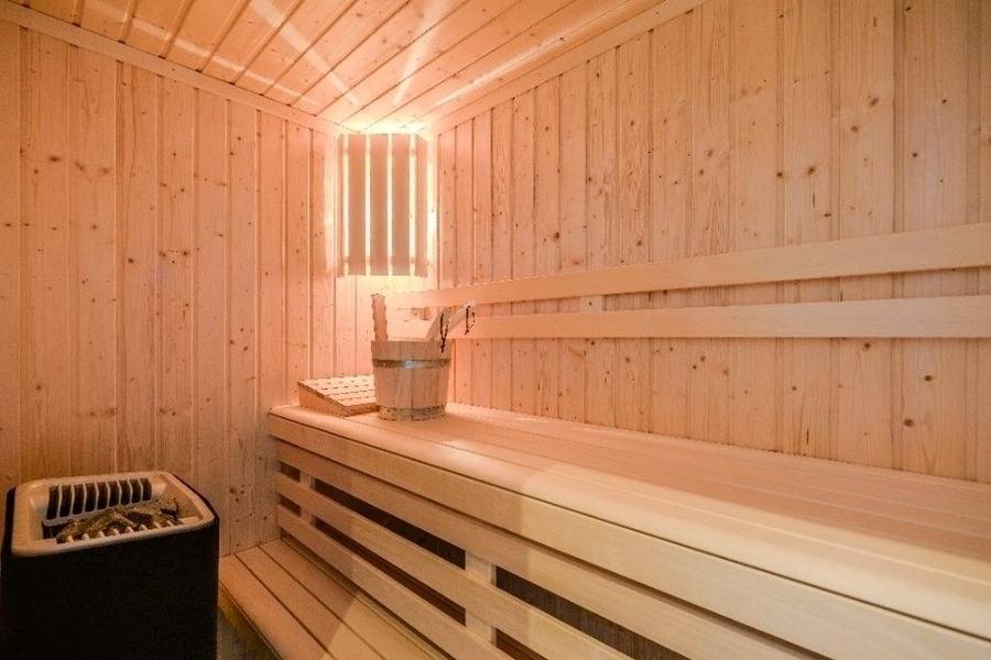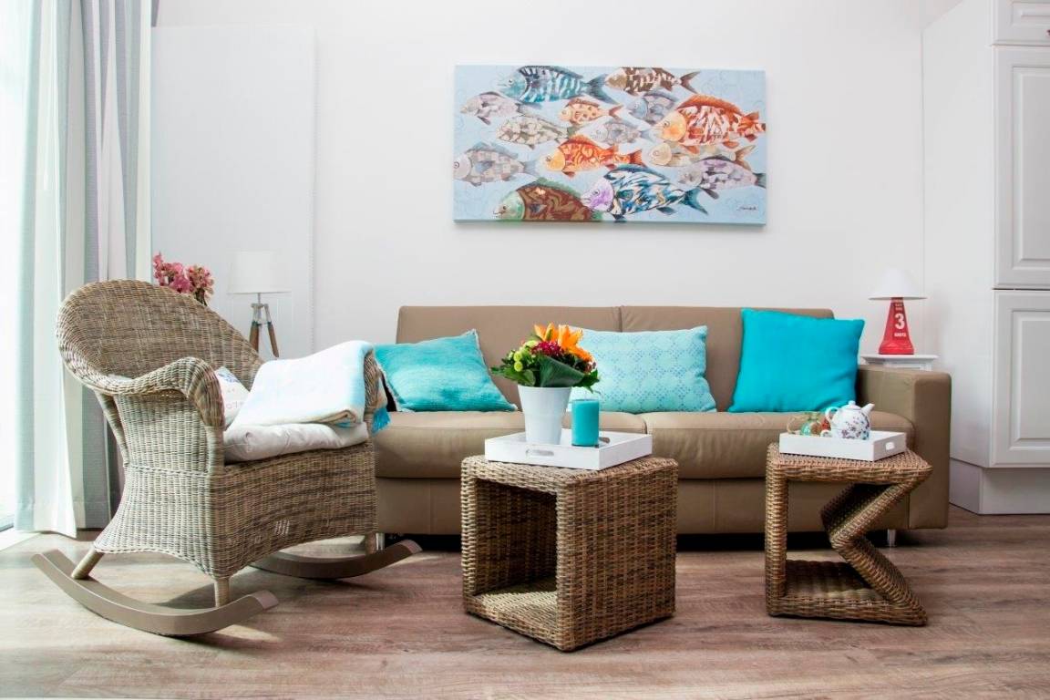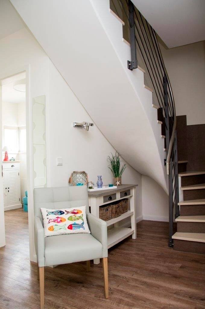 When it's cold outside, you can snuggle up in front of a cozy fireplace in the living room. After a day of exploring the area, allow yourself to enjoy quiet and relaxation in our sauna with bath and chill-out room. This room leads to a small patio overlooking the Baltic Sea and the inland lake. The chill-out room is furnished with a top-quality sofa-bed (140 x 200 cm), so that it can also be used as a comfortable ground floor bedroom.