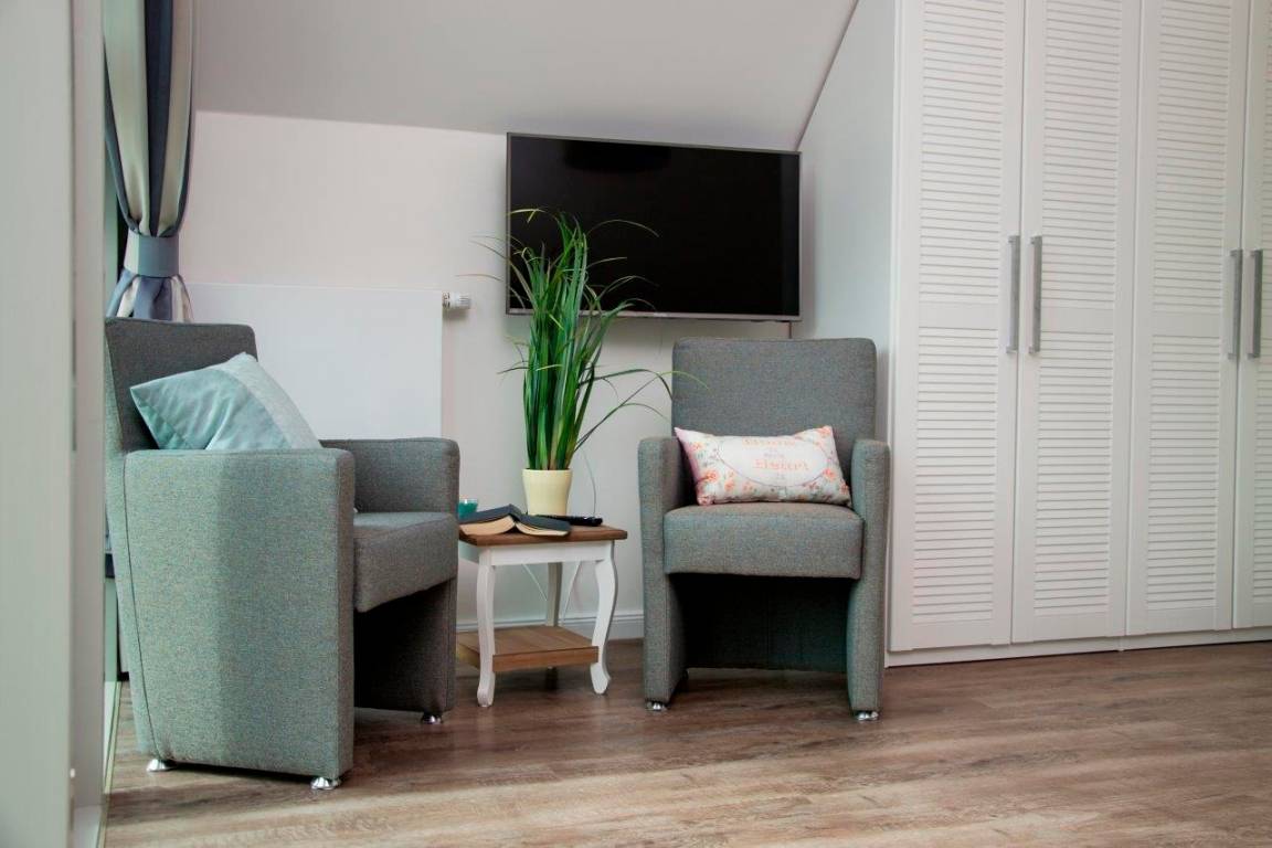 In der Winterzeit wärmt Sie der gemütliche Kaminofen im Wohnraum. Ruhe und Entspannung finden Sie nach erlebnisreichen Tagen in der Sauna nebst Bad und Ruheraum, von dem es auf die kleine Terrasse mit Blick zur Ostsee und zum Binnensee geht. Der Ruheraum ist mit einem hochwertigen Schlafsofa (140 x 200 cm) ausgestattet, so dass dieses Zimmer wahlweise in ein gemütliches Schlafzimmer im EG verwandelt werden kann.