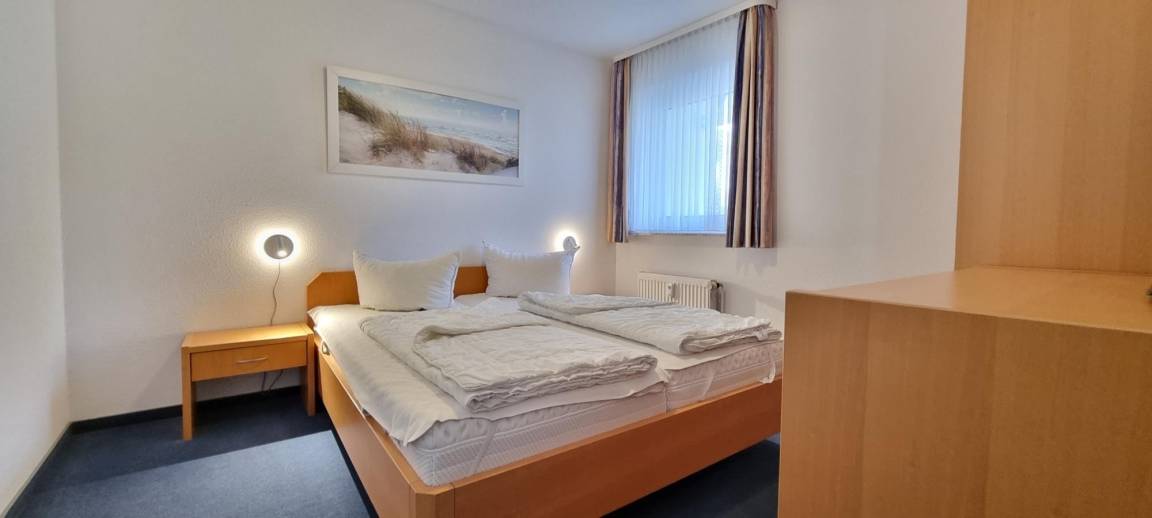 Willkommen in Appartement 54, Ihrem gemütlichen Feriendomizil an der Ostsee. Diese Wohnung eignet sich ideal für Familien, Paare oder kleine Gruppen und bietet Platz für bis zu 4 Personen. Das separate Schlafzimmer ist mit einem komfortablen Doppelbett und einem geräumigen Kleiderschrank ausgestattet, sodass erholsamer Schlaf garantiert ist. Im offenen Wohnbereich befindet sich eine gemütliche Schlafcouch, die zusätzlichen Schlafplatz für zwei weitere Personen bietet.