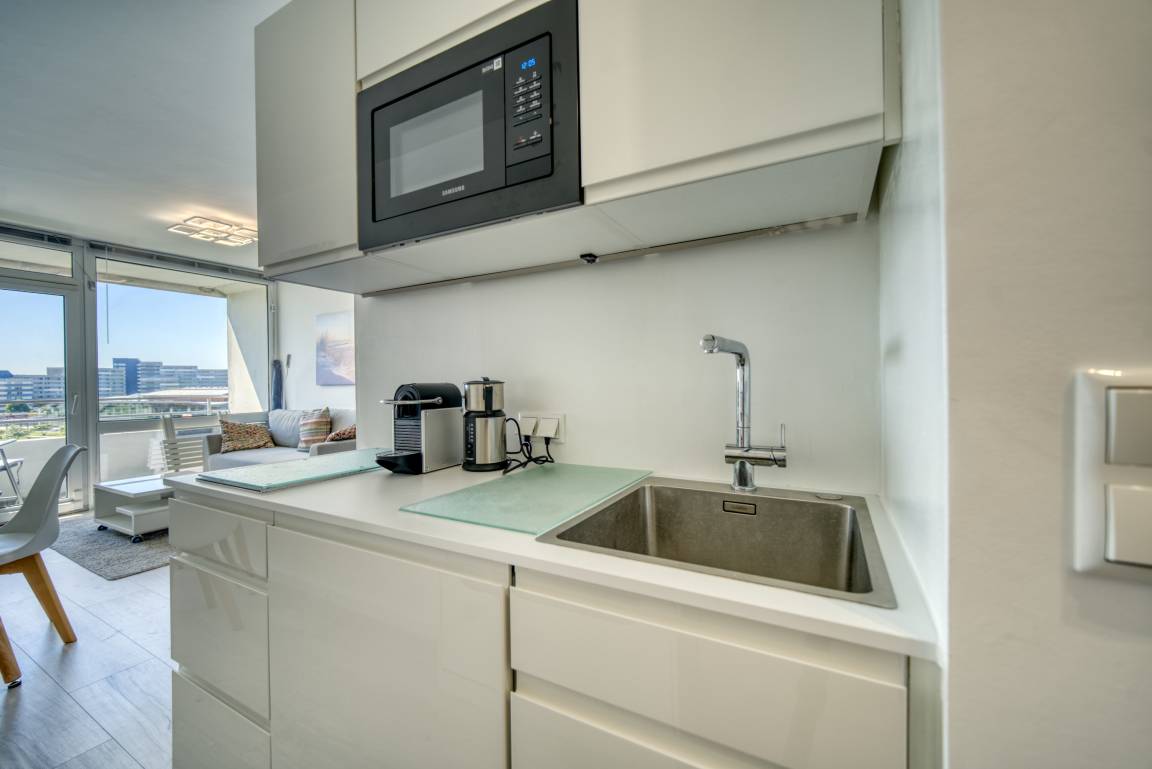 Genießen Sie einen erholsamen Urlaub in dieser 30 m² großen Ferienwohnung im Appartementhaus „Schöne Aussicht" in Heiligenhafen. Die Wohnung in der 5. Etage ist ideal für zwei Personen, die Strandnähe und Komfort schätzen.