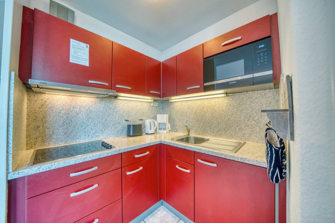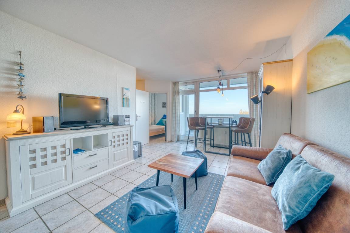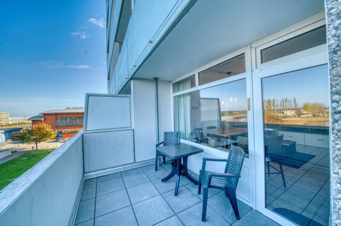 Herzlich willkommen in Ihrer Nichtraucher-Ferienwohnung im Haus B des Ferienparks Heiligenhafen, nur ca. 300 m vom Strand entfernt! Die 3. Etage bietet 45 m² für bis zu 3 Personen mit großem Balkon und Ostseeblick. Ausstattung: Wohn-/Schlafbereich mit Doppelbett auf Podest, separates Kinderzimmer mit Einzelbett, Flachbild-TV, voll ausgestattete Küche (Ceranherd, Kühlschrank mit Gefrierfach, Mikrowelle, Toaster, Wasserkocher, Filterkaffeemaschine), modernes Bad mit Dusche und Handtuchtrockner. WLAN inklusive. Parkplatz hinter dem Gebäude, mehrere Fahrradräume, Fahrstuhl zu jeder Etage. Nichtraucher, keine Haustiere. Ideal für einen entspannten Aufenthalt an der Ostsee.