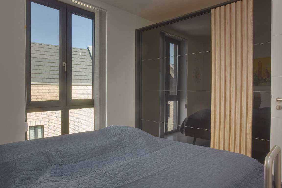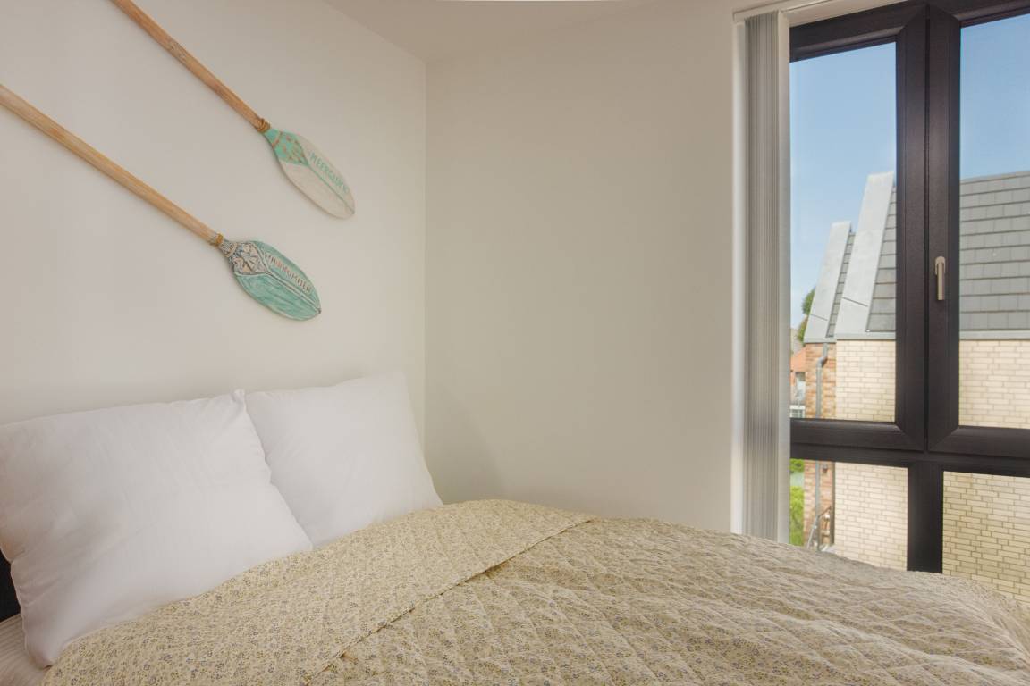Im Hauptschlafzimmer erwartet Sie ein erhöhtes Doppelbett (180 × 200 cm, Höhe 58 cm) mit Aufstehhilfe sowie ein geräumiger Kleiderschrank. Das zweite Schlafzimmer ist mit einem kleinerem Doppelbett (140 × 200 cm) und kleinem Kleiderschrank ausgestattet. Beide Räume lassen sich mittels Lamellenvorhang abdunkeln bzw. bieten Sichtschutz. Allergiker geeignete Bettwäsche und Handtücher können optional hinzu gebucht werden.