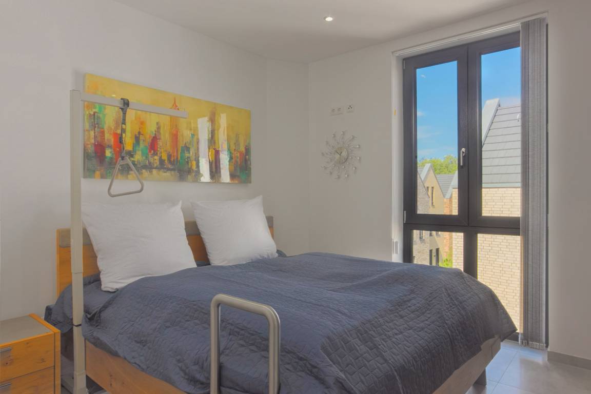 Die beiden sonnigen Balkone (Südseite) sind stufenfrei über Rampen zugänglich und laden zum Frühstück im Freien oder zum Ausklang eines Sommertages ein. Beleuchtung und elektrische Rollläden sorgen für zusätzlichen Komfort. In der Unterkunft hat jeder Raum mit Fenster zudem Insektenschutz.