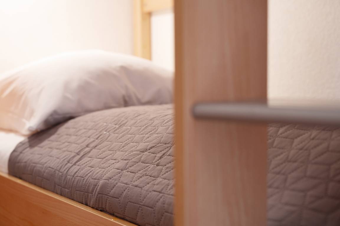 Schlafzimmer 2: 1 Etagenbett (2x 90x200 cm), Kleiderschrank, Oberlichtfenster zum Schlafzimmer, keine Verdunkelung, Platz für ein Babybett vorhanden