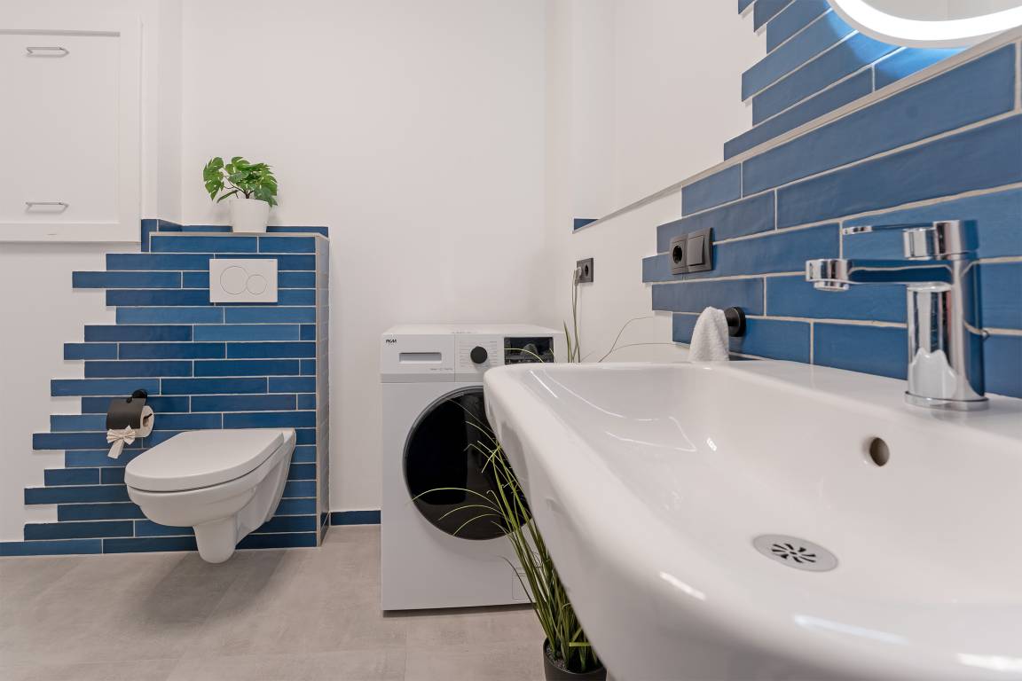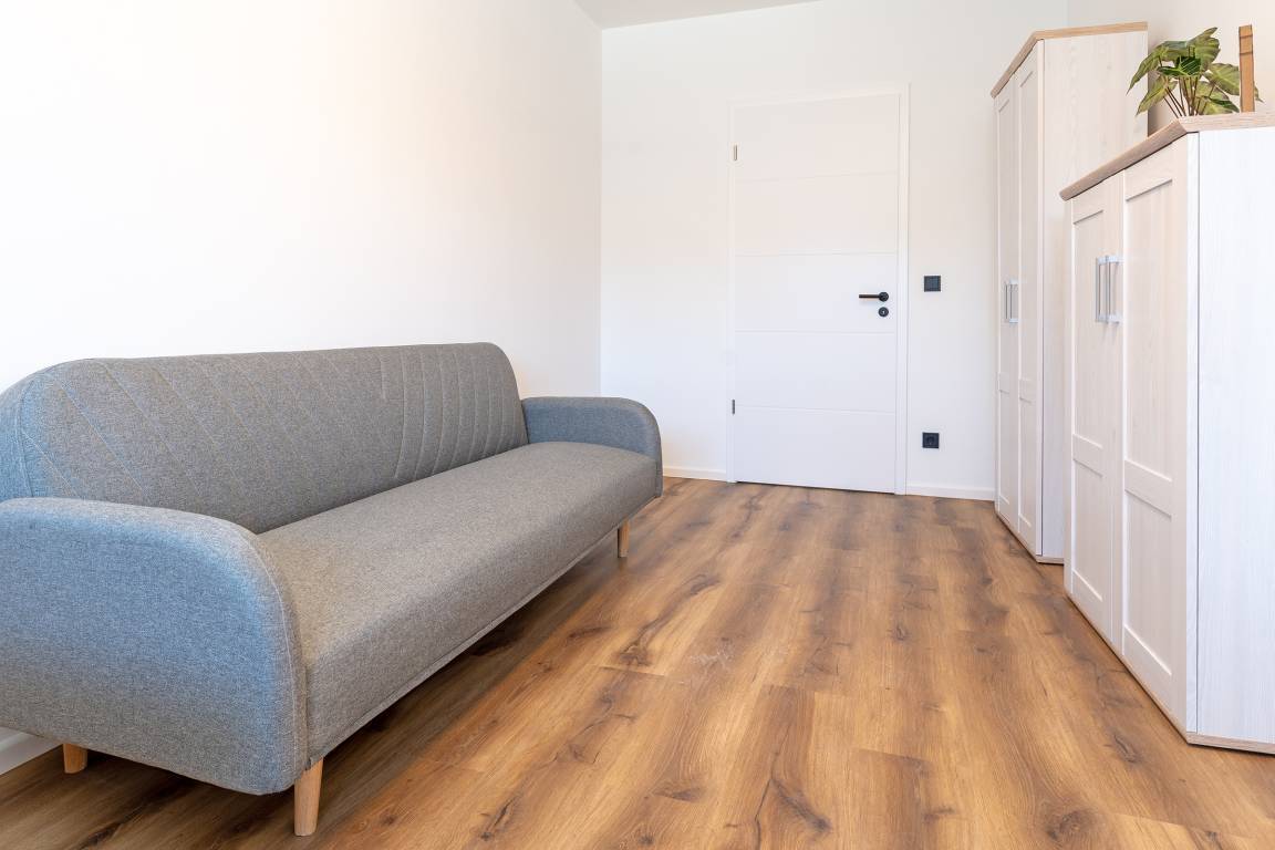 Die offene Küche ist ein Traum für Hobbyköche: Ein Induktionsherd, ein Backofen, eine Spülmaschine, ein Kaffeevollautomat und weitere moderne Geräte wie eine Mikrowelle und ein Toaster stehen bereit. Zudem ist eine Fußbodenheizung vorhanden, die für angenehme Wärme sorgt. Drei komfortable Schlafzimmer bieten genügend Platz für bis zu 8 Personen. Zwei Zimmer verfügen jeweils über ein Doppelbett (je 2x 90x200 cm). Das dritte Schlafzimmer verfügt über zwei Einzelbetten (2x 90x200 cm) und eine Schlafcouch (120x200 cm). Eine weitere bequeme Schlafmöglichkeit bietet das Sofa (100x200 cm) im Wohnzimmer. Ein Kinderhochstuhl und ein Babybett sind ebenfalls vorhanden. Die Wohnung verfügt über zwei moderne Badezimmer mit Duschen, Waschbecken, WC und Haartrockner. Zusätzlich gibt es eine Badewanne mit Haltegriff, eine Sauna zur Eigennutzung sowie eine Waschmaschine und einen Trockner.