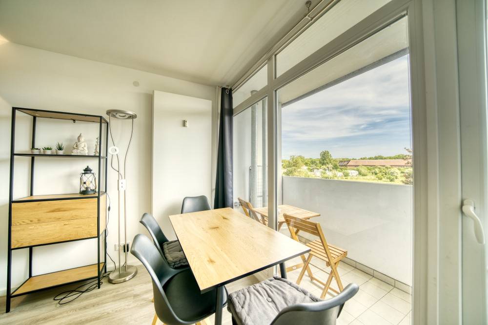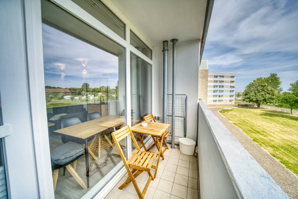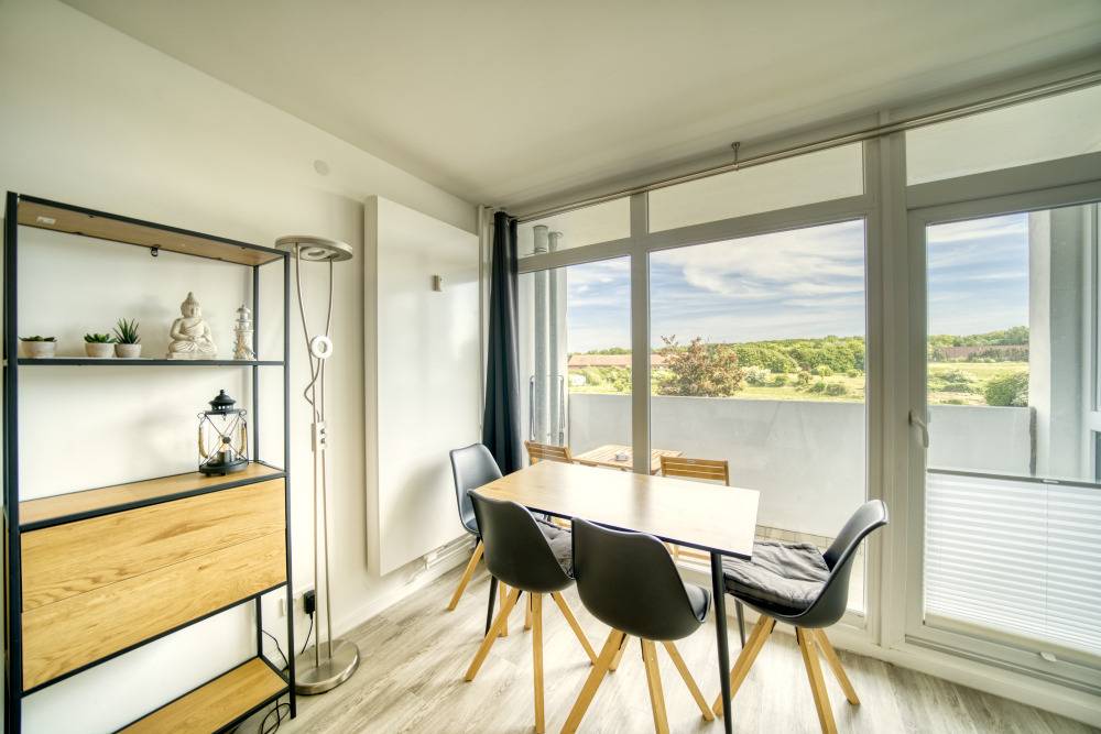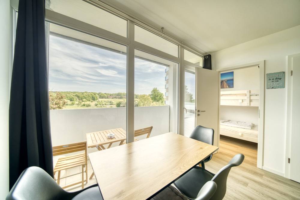 Willkommen in Ihrer hochwertig ausgestatteten Ferienwohnung in Haus N, 2. Etage, mit Südlage, 45 m² Wohnfläche und Platz für bis zu 4 Personen. Der Balkon mit Blick auf Felder und teilweise den Binnensee sorgt für echtes Urlaubsgefühl in ruhiger Lage.