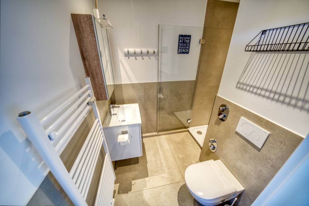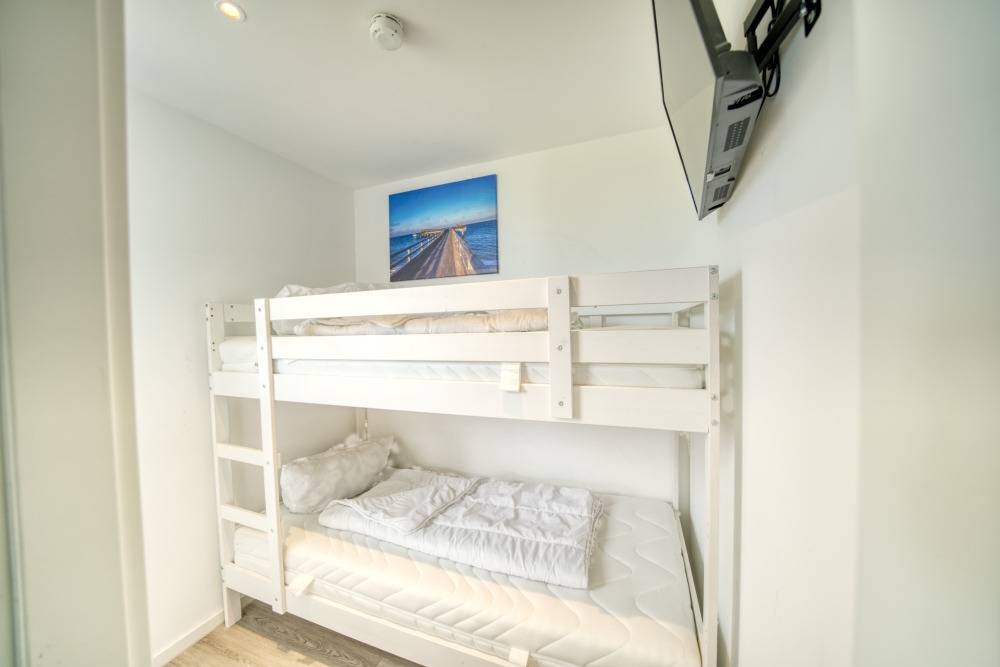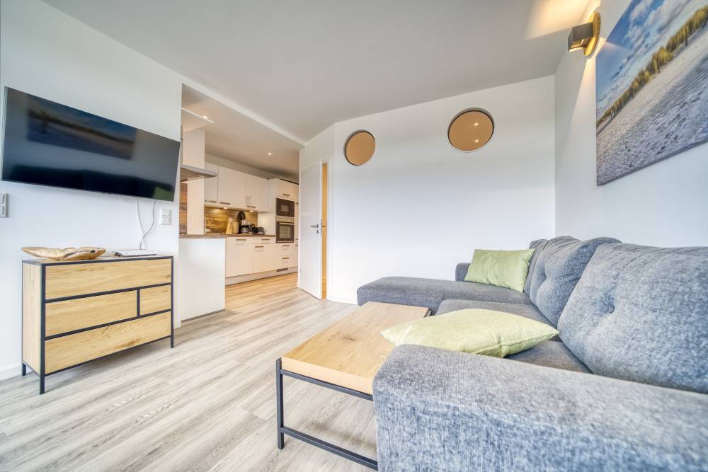 Hochwertige Einbauküche mit Ceranfeld, Backofen, Geschirrspüler, Kühlschrank mit Gefrierfach, Kaffeemaschine und Wasserkocher. Offener Wohn-Essbereich mit Sofa, Flachbild-TV und Esstisch. Separates Schlafzimmer mit Doppelbett und TV, Kinderzimmer mit Etagenbett und TV. Modernes Bad mit Dusche, Handtuchtrockner und Waschtisch. Sonniger Balkon mit Ausblick. Bonus: WLAN. Nichtraucher, keine Haustiere, Fahrstuhl vorhanden, Fahrradräume im Ferienpark. Strand ca. 300 m, Parkplatz inklusive. Freizeitmöglichkeiten wie Aktiv-Hus, Schwimmbad, Sauna und Kinderspielwelt sorgen für abwechslungsreiche Urlaubstage an der Ostsee.