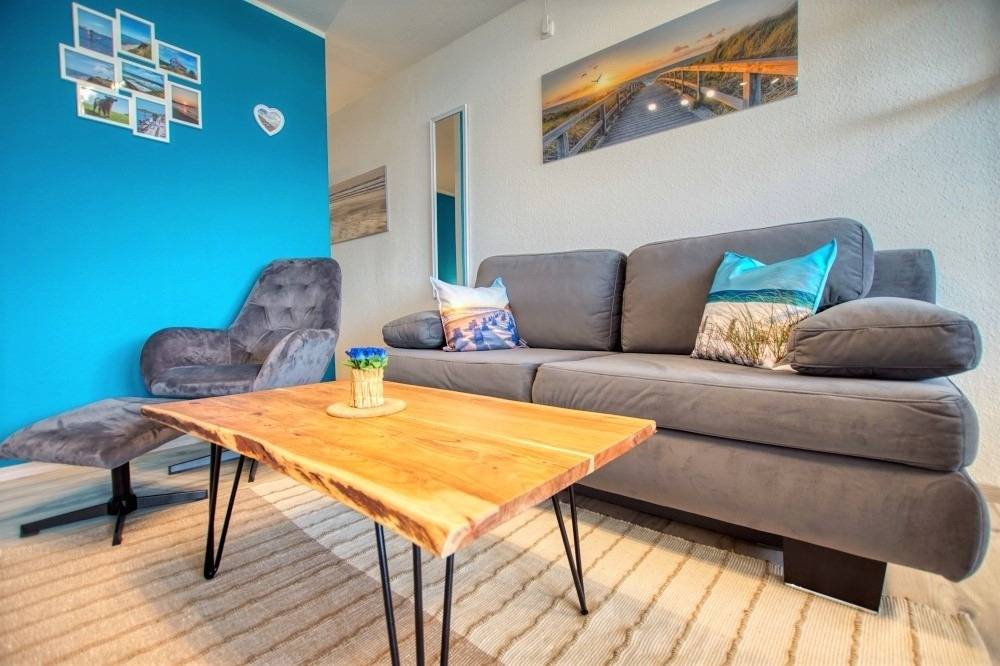 Wohn-/Essbereich mit Couch, Relax-Sessel und Flachbild-TV. Schlafbereich mit Doppelbett, TV und dekorativer Mittelwand. Separates Kinderzimmer mit Etagenbett und TV. Designboden, teilweise gefliest. Küche mit Ceranfeld, Backofen, Geschirrspüler, Mikrowelle, Kühlschrank, Kaffeemaschine, Eierkocher, Toaster, Wasserkocher. Bad mit Duschkabine. Kostenloses WLAN, freier Eintritt in die „Schatzinsel" im Aktiv-Hus. Nichtraucherwohnung, keine Haustiere, Fahrstuhl, Fahrradräume, Parkplatz vorhanden. Strand ca. 300 m entfernt.