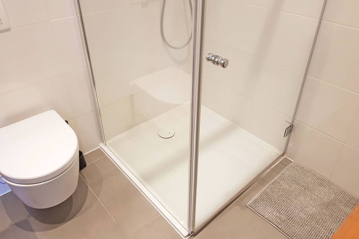 Das moderne Badezimmer ist mit einer ebenerdigen Dusche inklusive Rain-Shower-Funktion, WC, Föhn, Handtuchwärmer und Waschmaschine ausgestattet. Die offene Küche mit Induktionsherd und Spülmaschine lässt keine Wünsche offen, der angrenzende Essbereich lädt zu geselligen Mahlzeiten ein. Im Flur gibt es zusätzlichen Stauraum, und Koffer können platzsparend unter dem Alkoven verstaut werden.