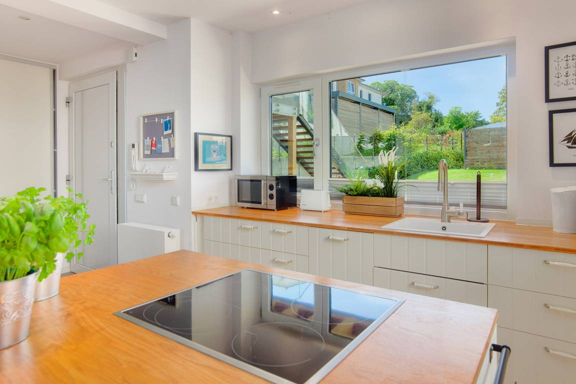 Im Schlafzimmer steht ein Doppelbett (180x200 cm, getrennte Matratzen) sowie ein geräumiger Kleiderschrank zur Verfügung. Ein gemütlicher Alkoven im dänischen Stil (140x200 cm) ist besonders bei Kindern beliebt. Beide Schlafräume sind mit Schiebetüren ausgestattet. Alternativ kann die Couch im Wohnbereich als zusätzliche Schlafgelegenheit genutzt werden. Bettwäsche, auch für Allergiker geeignet, Handtücher, ein Babyreisebett und ein Hochstuhl können bei Bedarf geliehen werden. Verdunkelungsvorhänge sorgen für erholsamen Schlaf.