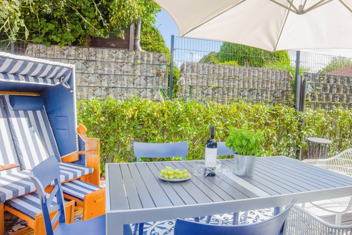 Die helle, modern eingerichtete Ferienwohnung ist ideal für Gäste, die Erholung und Entspannung suchen. Auf rund 60 Quadratmetern im barrierearmen Erdgeschoss finden bis zu zwei Erwachsene und zwei Kinder ausreichend Platz. Das maritime Flair und die geschmackvolle Einrichtung sorgen für eine einladende Atmosphäre. Der offene Wohnbereich mit Laminatboden bietet direkten Zugang zur möblierten Terrasse mit Strandkorb und großzügigem Sitzbereich. Dank bodentiefer Fenster gelangt viel Tageslicht in die Wohnung, während die Ostausrichtung der Terrasse bis zum frühen Nachmittag Sonne garantiert.