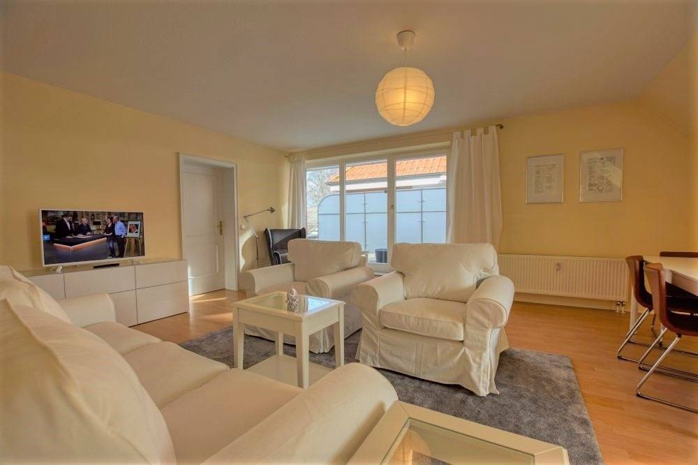 Verbringen Sie Ihren Urlaub in dieser großzügigen Dachgeschosswohnung in der Friedrich-Ebert-Straße 16a in Heiligenhafen. Mit 129 m² bietet die Wohnung Platz für 6 bis 8 Personen und einen Ostseefernblick über Fehmarnsundbrücke, Graswarder und Naturschutzgebiet.