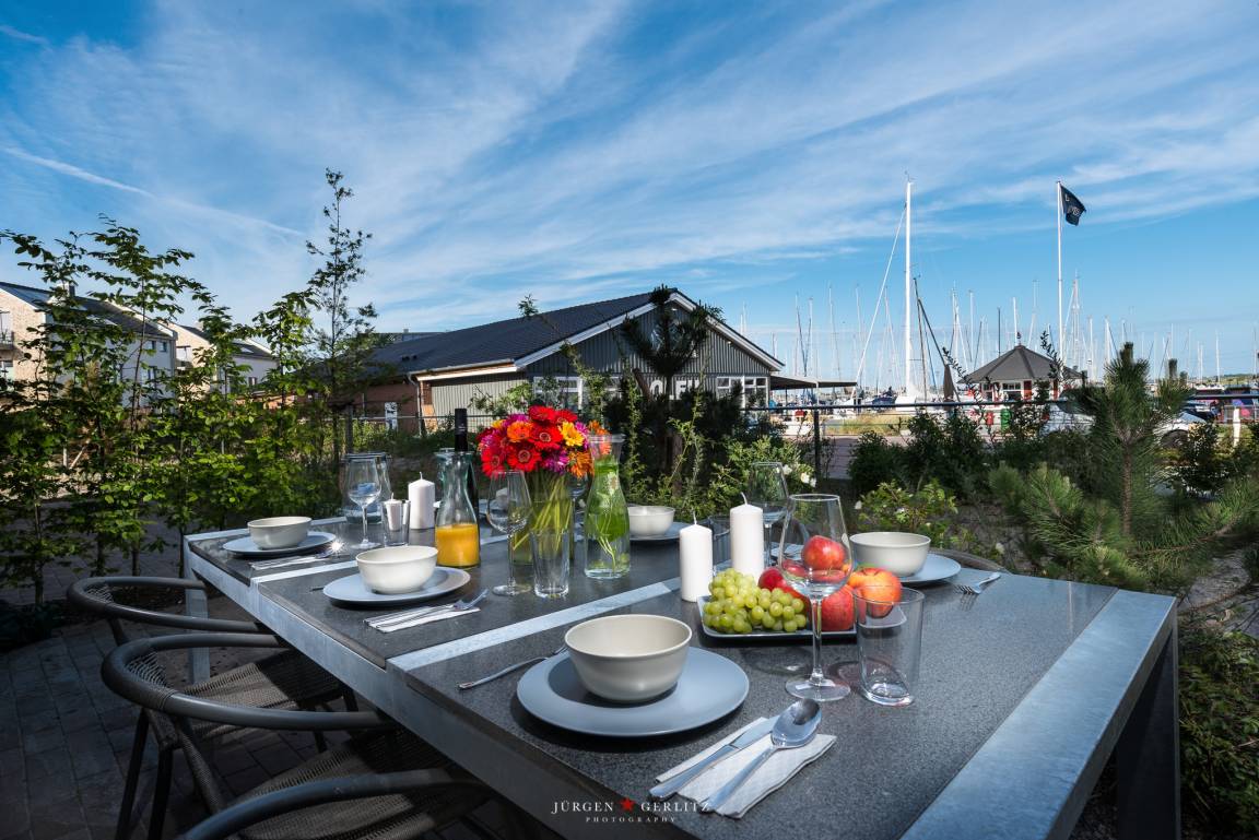 Exklusive, stilvoll eingerichtete Ferienwohnung am schönsten Platz der Yachthafenpromenade mit direktem Blick auf den Hafen und Graswarder.