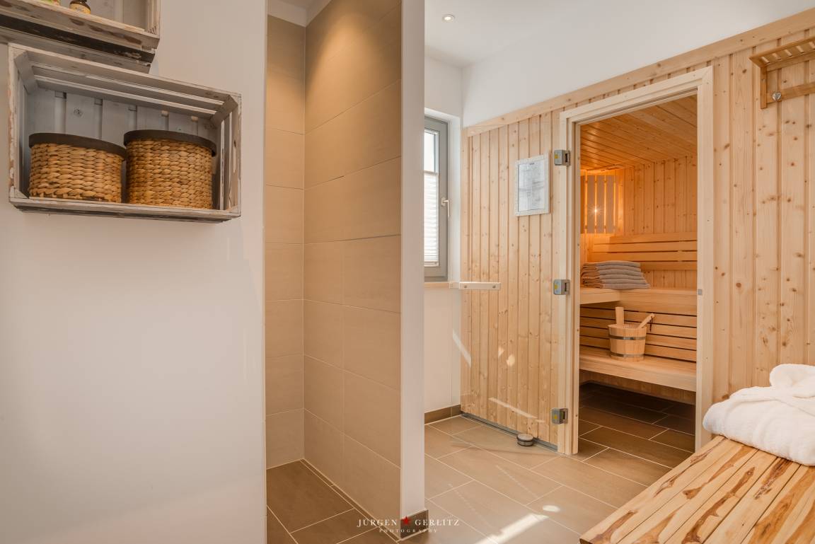 Abends entspannen Sie sich vor dem Kamin oder in der eigenen Sauna.