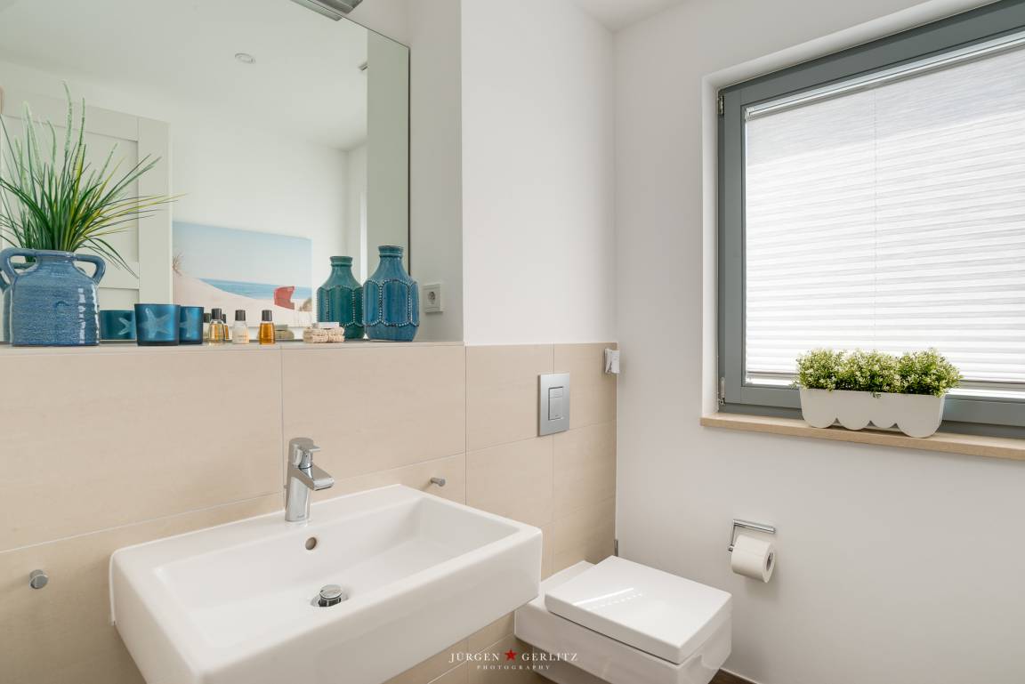 Ebenfalls im OG befinden sich ein Badezimmer mit Dusche und Wannenbad, sowie ein Abstellraum mit Waschmaschine und Wäschetrockner.