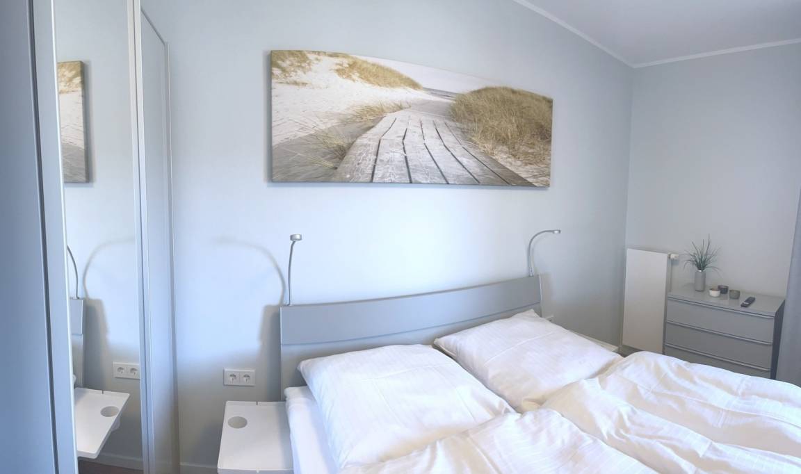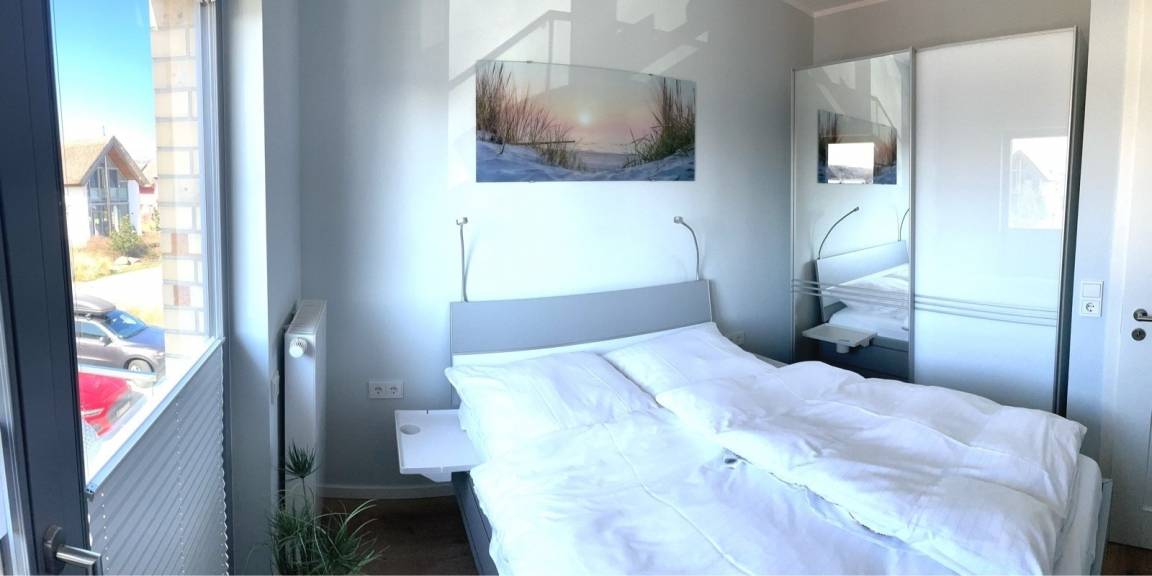 Ein weiteres Schlafzimmer mit einem Doppelbett (160x200cm), sowie ein kleineres Schlafzimmer mit einem französischen Bett (140x200cm) und angrenzendem kleinen Balkon runden die Schlafmöglichkeiten in der Wohnung ab. Aus diesen beiden Schlafräumen haben Sie einen schönen Blick auf den Binnensee und den Sonnenuntergang.