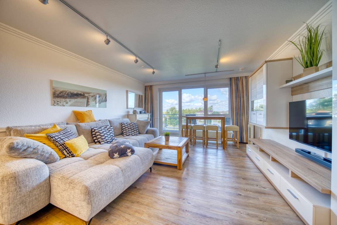Direkt zwischen Ostsee und Binnensee, nur wenige Schritte zum Hauptbadestrand. Stilvoll eingerichteter Schlafbereich, Wohnbereich mit Couch und Schlaffunktion (bis 4 Personen). Offene Küchenzeile mit Geschirrspüler, Backofen, Mikrowelle, Ceranfeld und Tassimo-Kapselmaschine. Westbalkon für Abendsonne und spektakuläre Sonnenuntergänge. Highspeed-Internet (bis 150 MBit/s Download) und Waschmaschine in der Anlage. Nichtraucherwohnung.