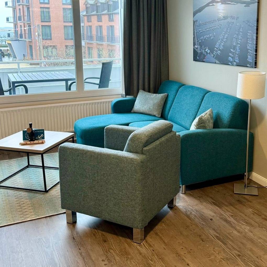 Der Wohnbereich bietet ausreichend Platz für gemütliche Stunden nach einem erlebnisreichen Tag in Heiligenhafen. Ob Sie den Morgen mit einem Frühstück bei Hafenblick beginnen oder den Abend entspannt an der frischen Seeluft ausklingen lassen – der Balkon wird schnell zu einem Ihrer persönlichen Lieblingsplätze.