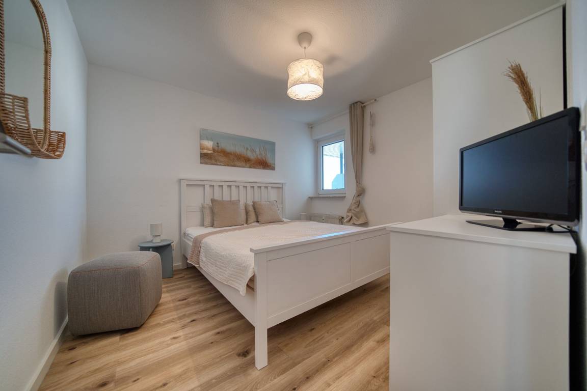 Schlafzimmer: Doppelbett, TV; Wohnbereich: Schlafsofa für 2 Personen, Smart-TV
