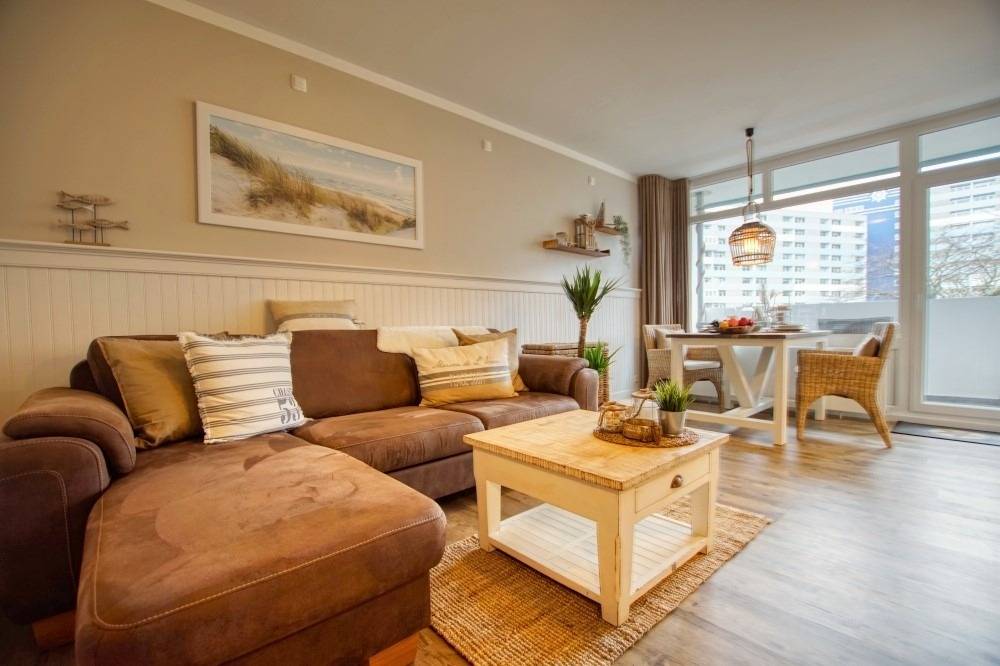 Kostenfreies WLAN, Fahrstuhl, Fahrradraum und kostenfreier Parkplatz sind vorhanden. Nichtraucherwohnung, keine Haustiere. Der Strand ist ca. 300 m entfernt. Der Ferienpark bietet zahlreiche Freizeitmöglichkeiten mit Geschäften und dem Aktiv-Hus.