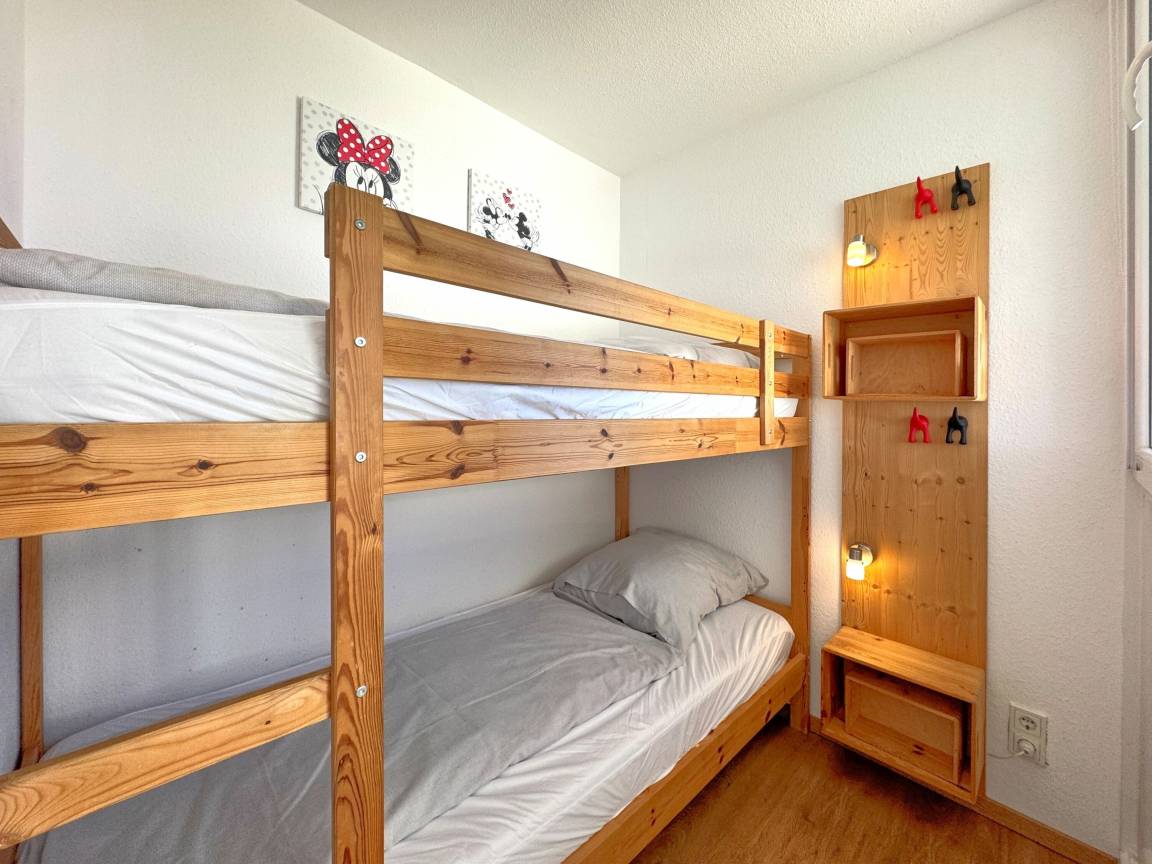 Der kombinierte Wohn- und Schlafbereich ist hell und funktional eingerichtet und bietet eine angenehme Urlaubsatmosphäre. Ein komfortables Doppelbett (160x200) sorgt für erholsame Nächte. Für die kleinen Urlaubsgäste steht ein Etagenbett zur Verfügung, das einen eigenen Schlafbereich schafft. Verdunklungsmöglichkeiten ermöglichen auch tagsüber Ruhe und Privatsphäre.