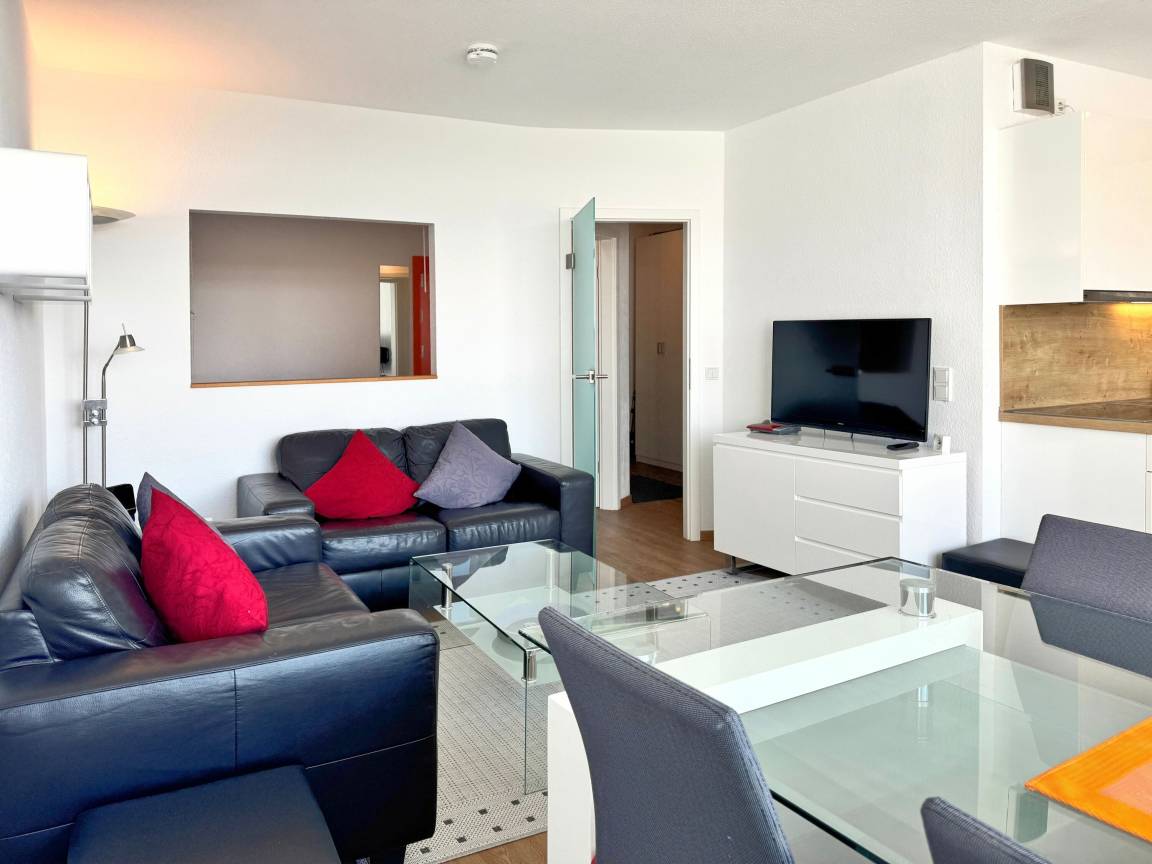 Der Wohnbereich ist mit Sitzgelegenheiten, einem Esstisch sowie einem Fernseher ausgestattet. Zusätzlich stehen WLAN / WiFi sowie ein Radio bzw. eine Musikanlage zur Verfügung, sodass auch gemütliche Abende in der Wohnung entspannt gestaltet werden können.