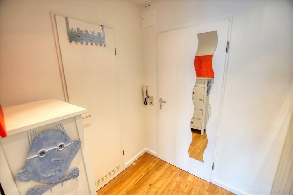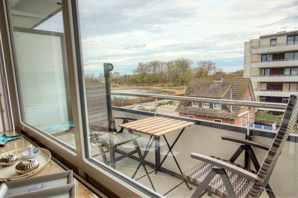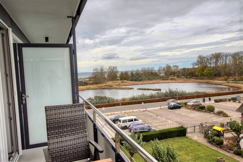 Charmante Ferienwohnung im Appartementhaus Steinwarder 7 in Heiligenhafen, ca. 35 m² für 2 Personen, gelegen in der 3. Etage. Der Balkon bietet einen schönen Blick auf Ostsee und Binnensee – ideal für entspannte Urlaubstage zu zweit.