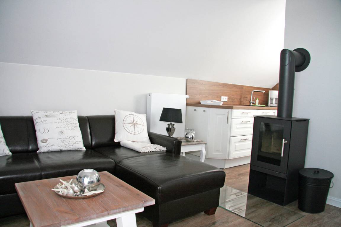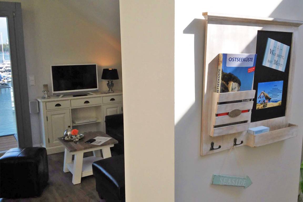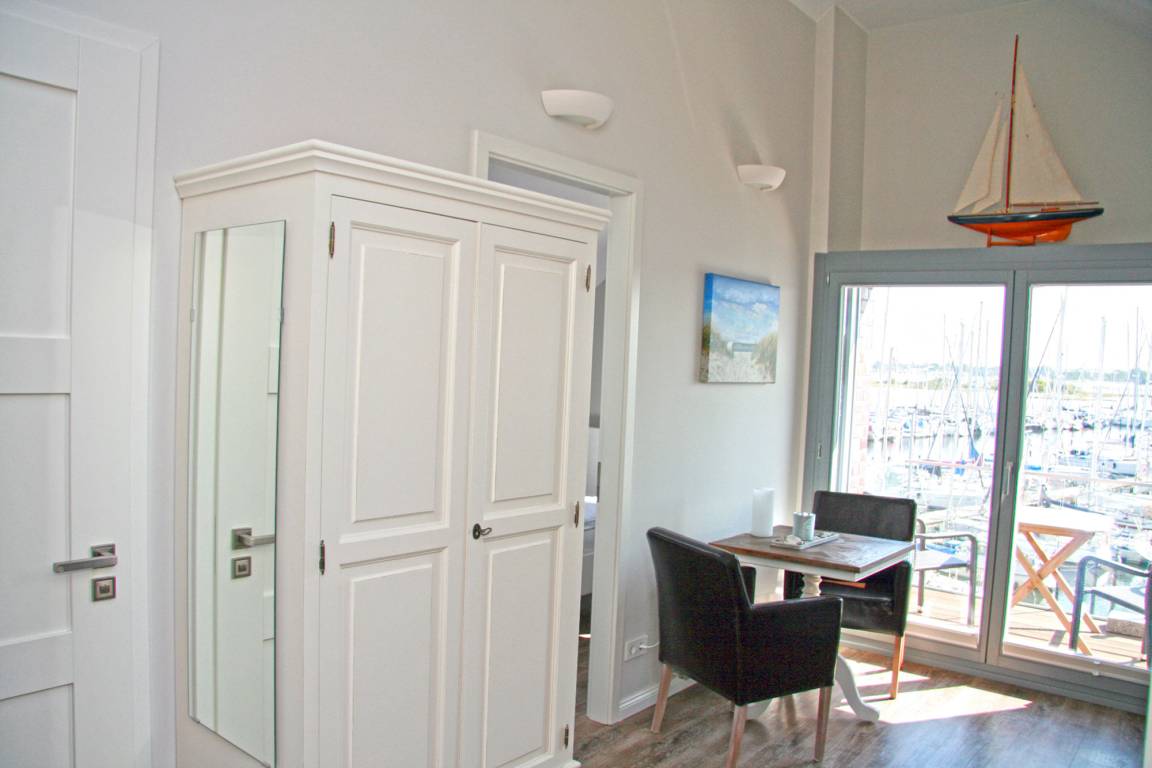 Die komfortable Ferienwohnung für 2 Erwachsene ist auf ca. 42 m² mit modernen und hochwertigen Möbeln für den gehobenen Anspruch eingerichtet. Zeitgemäße Annehmlichkeiten mit WLAN, TV, Radio, CD/Blue-Ray-Player und 2. TV im Schlafzimmer sind selbstverständlich. Die gesamte Wohnung ist mit Qualitätsboden ausgestattet. An kälteren Tagen oder bei Bedarf sorgt der Kaminofen (ohne Holzvorrat) für Behaglichkeit. So verbringen Sie hier zu jeder Jahreszeit einen erholsamen Urlaub. Genießen Sie den hellen Wohnbereich mit bodentiefen Fenstern und dem fantastischen Blick über den Jachthafen und in der Ferne die Ostsee mit der Fehmarn-Sund-Brücke. Die Leder-Couch und Beistellsessel sorgen dabei für bequemes Relaxen. Die offene, sehr gut ausgestattete Küche ist bei Bedarf mit den notwendigen Extras versehen, um den gehobenen Ansprüchen zu entsprechen. Damit steht der kulinarischen Abrundung Ihres Aufenthaltes nichts im Wege. Vom Essbereich oder dem kleinen möblierten Balkon mit Sonnenschirm lassen Sie dann Ihren Blick beim Essen in die Ferne schweifen. Hier erleben Sie wirklichen "Yachthafenblick" und genießen die Ostsee, eine gute Tasse Kaffee oder ein kühles Glas Wein. Für die nächtliche Ruhe steht Ihnen ein Schlafzimmer mit Doppelbett mit Einzelmatratzen zur Verfügung. Hotel-Bettwäsche und Handtücher sind Allergiker geeignet und gg. Gebühr möglich. Das Badezimmer bietet ebenfalls mit Handtuchwärmer und Regen-Dusche weitere Entspannung nach einem ereignisreichen Tag. Fahrräder sind gegen Gebühr beim örtlichen Verleih am Beach Motel möglich. Die Ferienwohnung erreichen Sie bequem von Ihrem Pkw-Stellplatz. Zugang zur Wohnung über Treppe. Die Wohnung ist ein Nichtraucher-Objekt! Haustiere sind nicht erlaubt! Ofen Holz gehört nicht zum Angebot!