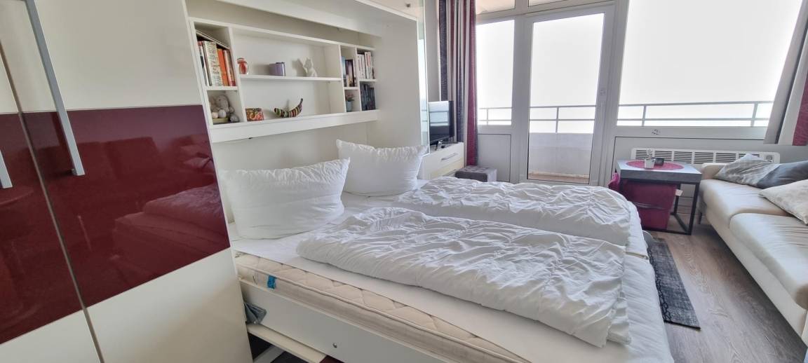Die Wohnung wurde 2016 vollständig saniert und hochwertig neu möbliert. Im Wohn-/Schlafzimmer befindet sich ein modernes Schrankklappbett, welches am Tag Platz schafft und nachts hohen Schlafkomfort bietet.