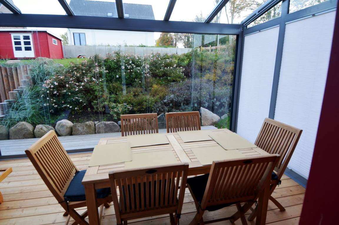 Der Garten des Ferienhauses lädt dazu ein, die frische Luft und die Ruhe der Umgebung zu genießen. Ob beim Entspannen auf der Terrasse oder beim Lesen im Wintergarten: Hier finden Sie zahlreiche Möglichkeiten, um die Seele baumeln zu lassen. Von Ihrem Balkon aus genießen Sie zudem einen tollen Weitblick auf die Ostsee, der jeden Morgen zu einem besonderen Erlebnis werden lässt.