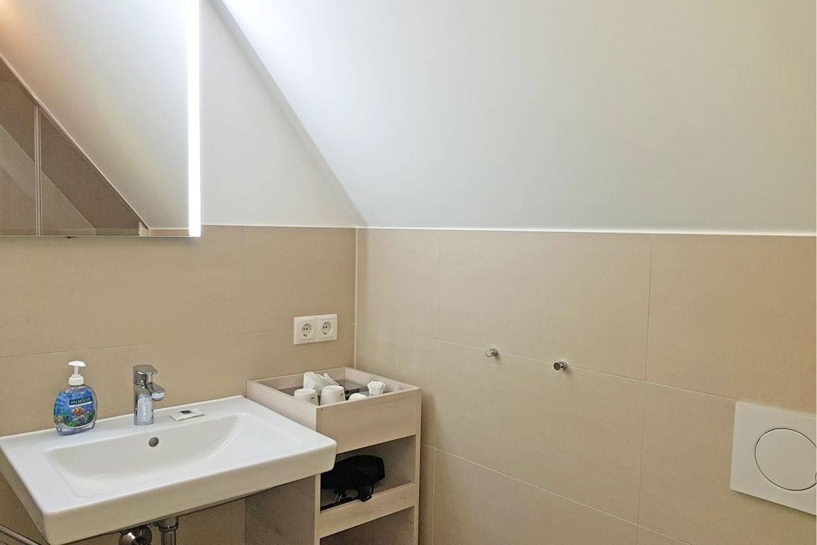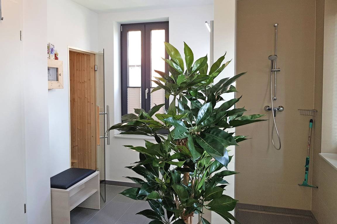 Die beiden Badezimmer in den oberen Etagen bieten viel Komfort – eines ist mit einer Badewanne ausgestattet, das andere verfügt über eine bodengleiche Dusche. Nach einem erlebnisreichen Tag an der Ostsee können Sie sich in der integrierten Sauna (gegen Gebühr) entspannen. Handtuchwärmer und WC sind ebenfalls vorhanden. Ein zusätzliches Gäste-WC im Erdgeschoss rundet die Ausstattung ab.