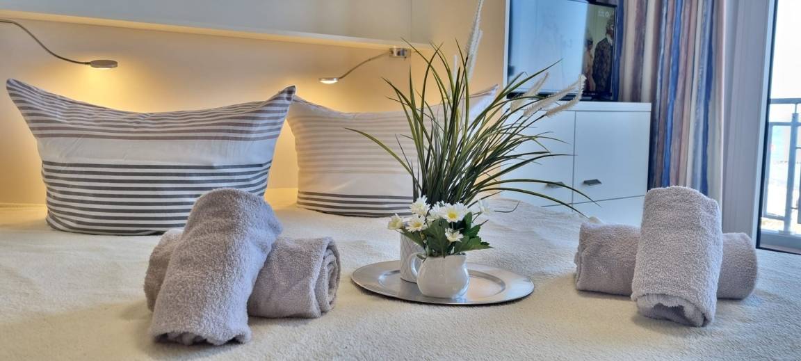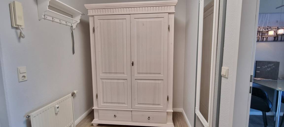 Ein Highlight ist der Südwest-Balkon mit weitem Blick bis zum Fehmarnsund. Hier genießen Sie die Sonne bis in die Abendstunden und erleben beeindruckende Sonnenuntergänge über dem Meer. Ergänzt wird das Angebot durch eine zusätzliche, ca. 12 m² große Dachterrasse zum ruhigen Innenhof – ideal zum Entspannen oder für eine ungestörte Auszeit im Freien.