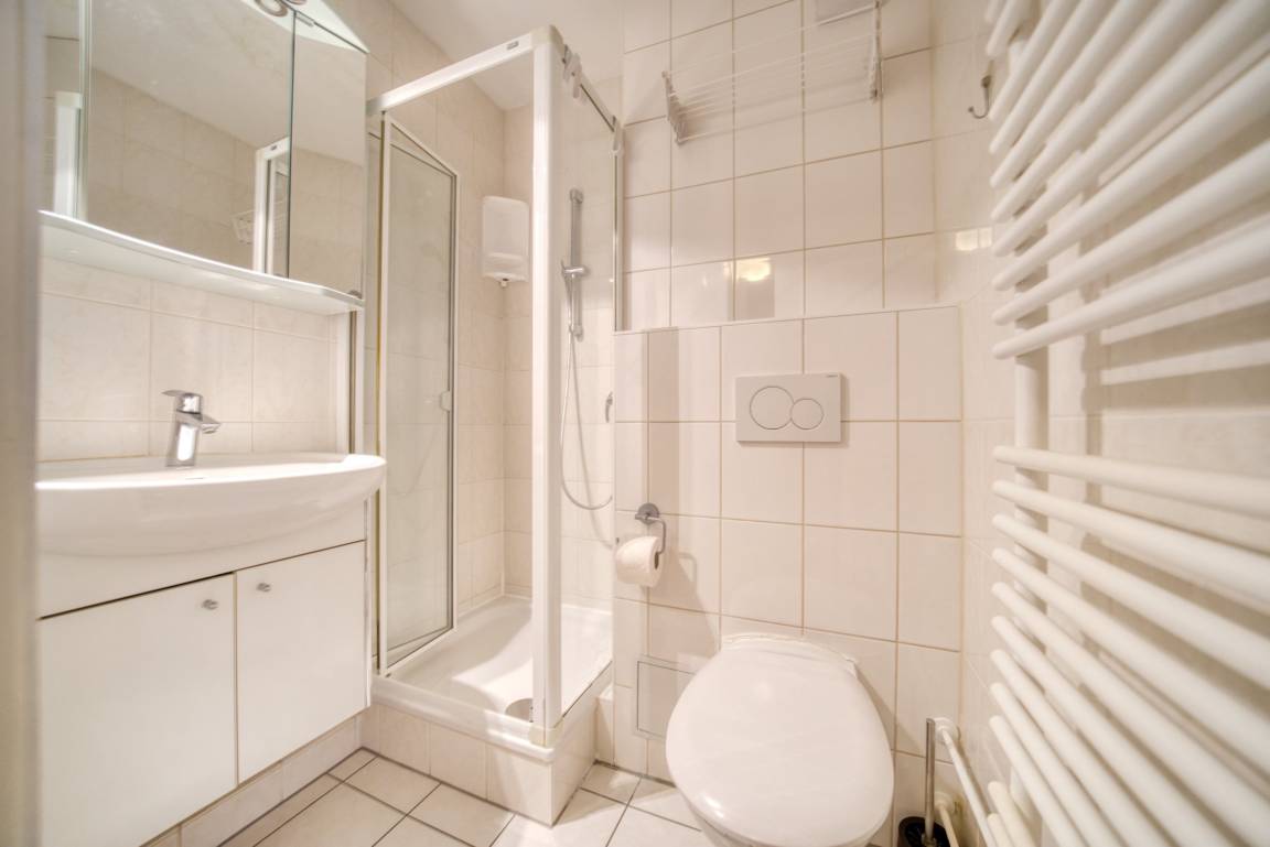 Modernes Bad mit Dusche und Handtuchtrockner. WLAN inklusive. Nichtraucherwohnung, keine Haustiere. Fahrstuhl zu jeder Etage, Fahrradräume vorhanden, Parkplatz hinter dem Ferienpark. Strand ca. 300 m entfernt. Aktiv-Hus mit Schwimmbad, Sauna, Wellness und Kinderspielwelt sowie Altstadt und Hafen in kurzer Entfernung.