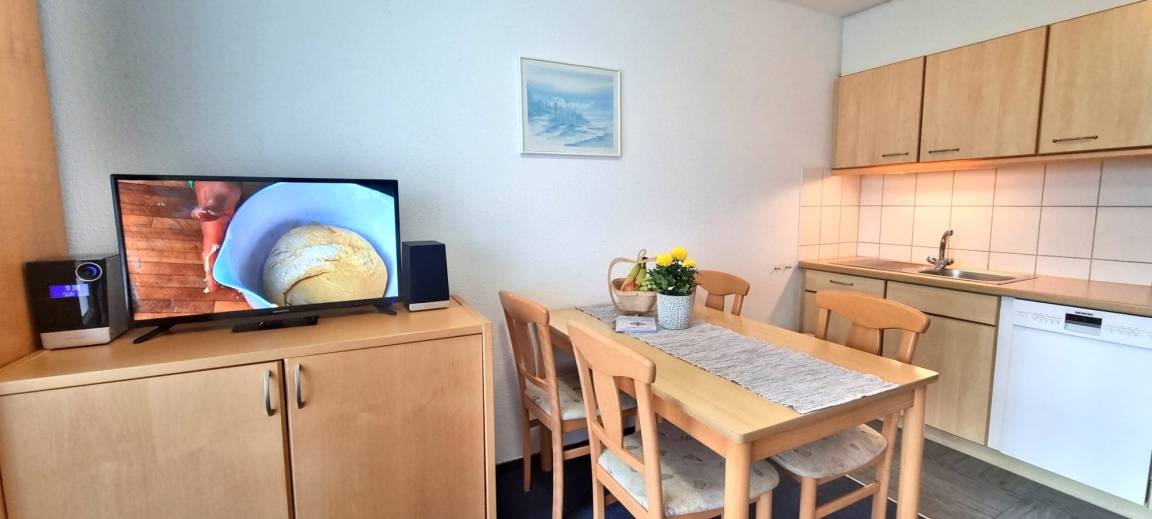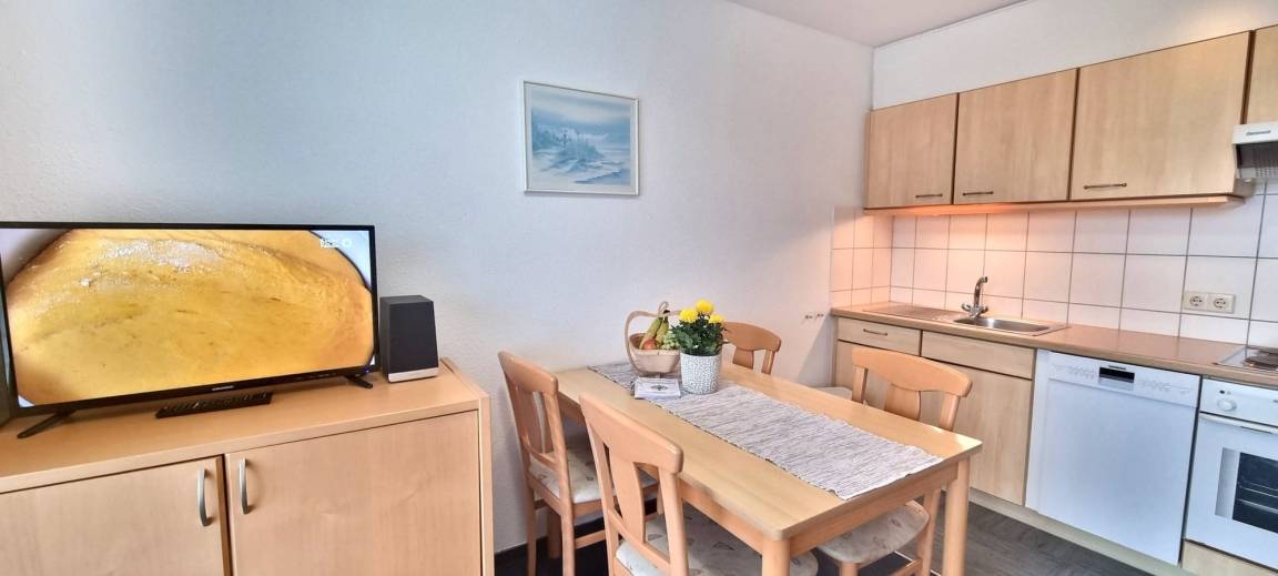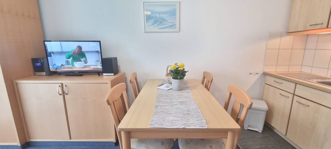 Die modern ausgestattete Küchenzeile ermöglicht es Ihnen, Ihre Mahlzeiten flexibel selbst zuzubereiten, vom schnellen Frühstück bis zum gemütlichen Abendessen. Auf der Terrasse mit herrlichem Westblick können Sie entspannen, den Sonnenuntergang genießen oder den Tag mit einem Kaffee beginnen.