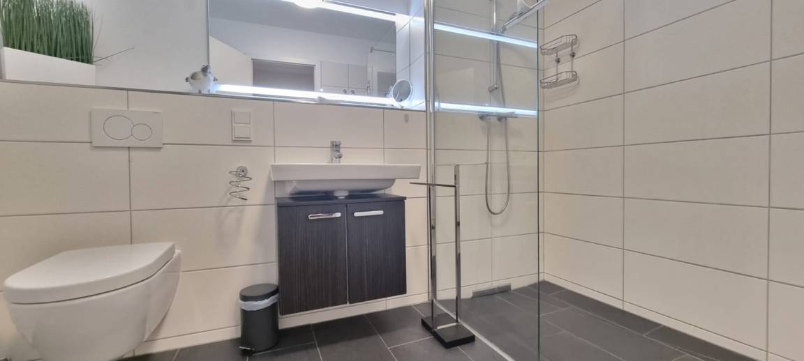 Das moderne Badezimmer ist mit einer Walk-in-Dusche, Handtuchheizung, Kosmetikspiegel und Fön ausgestattet. Für maximalen Komfort sind Bettwäsche sowie Hand- und Duschtücher im Wäschepaket inklusive. Die Ferienwohnung ist Nichtraucher und Haustiere sind nicht erlaubt, um eine angenehme und saubere Atmosphäre für alle Gäste zu gewährleisten.