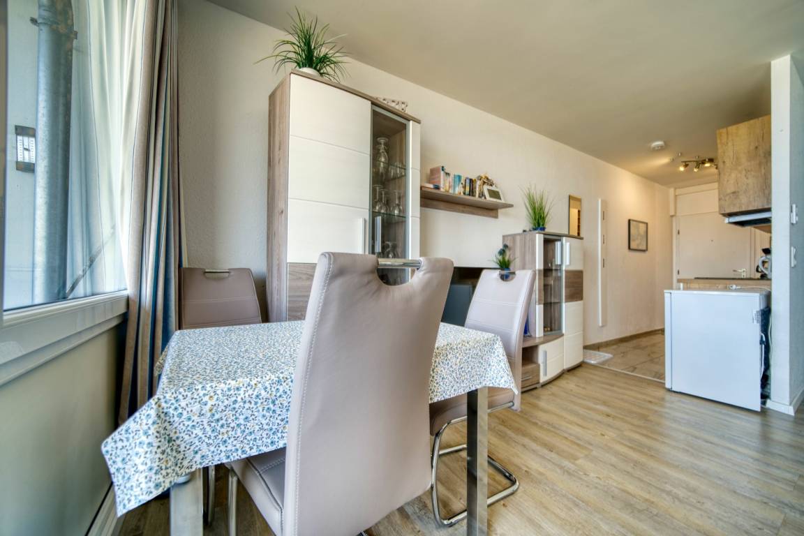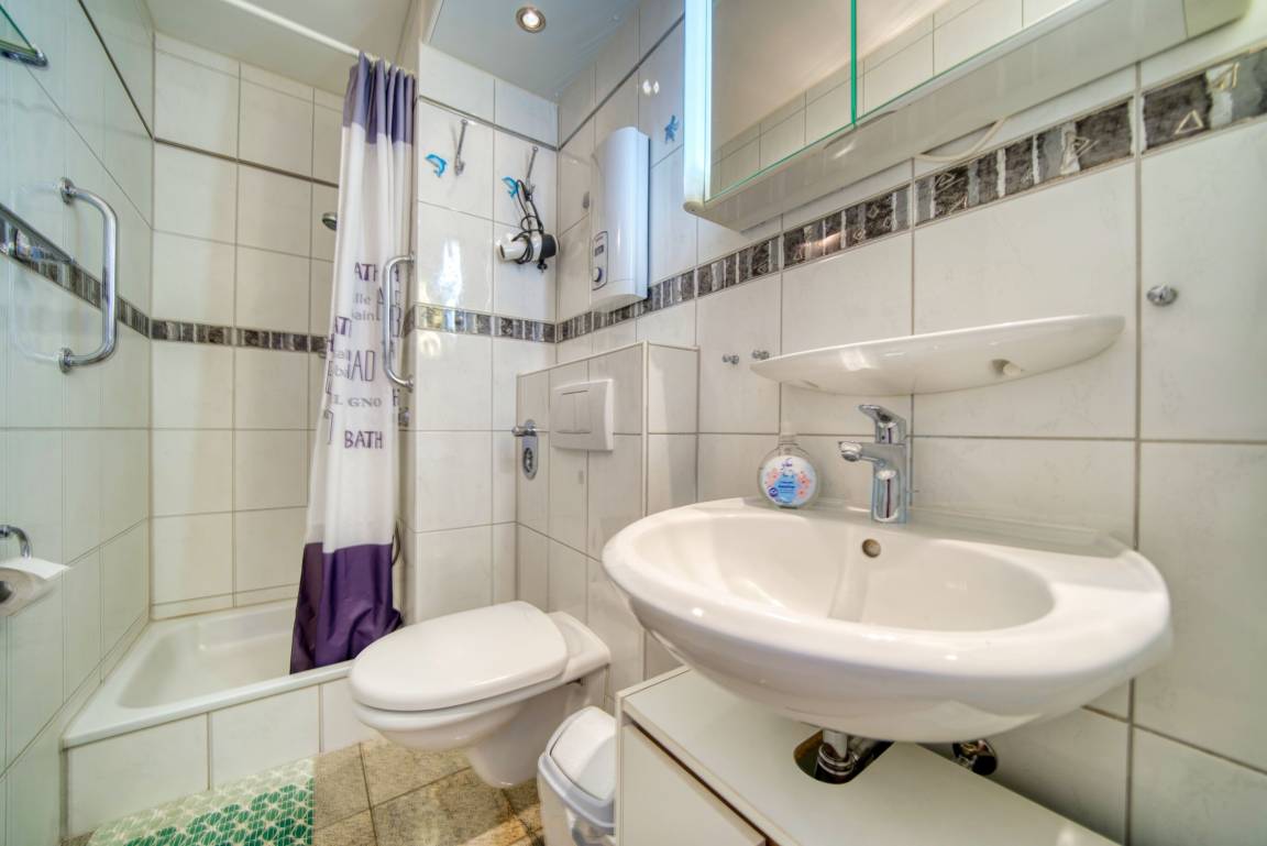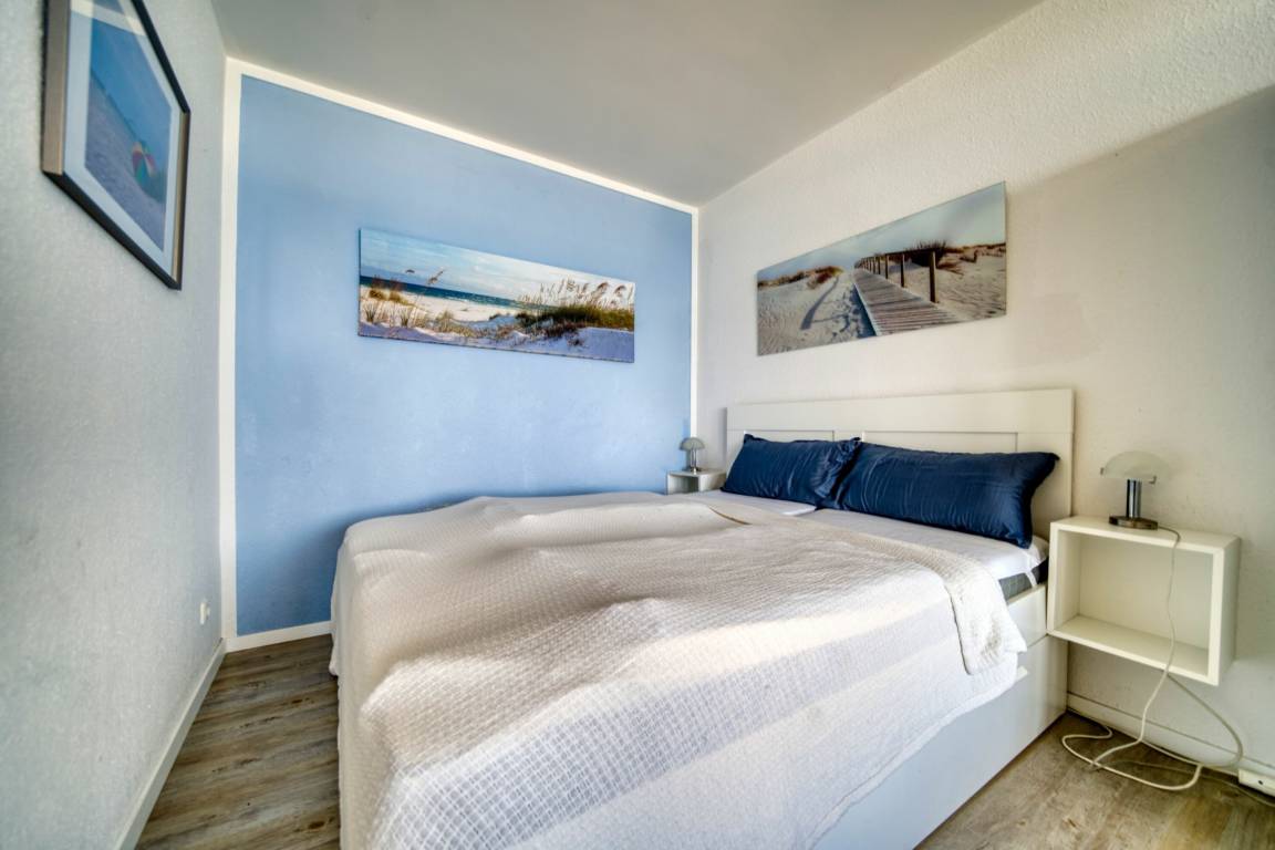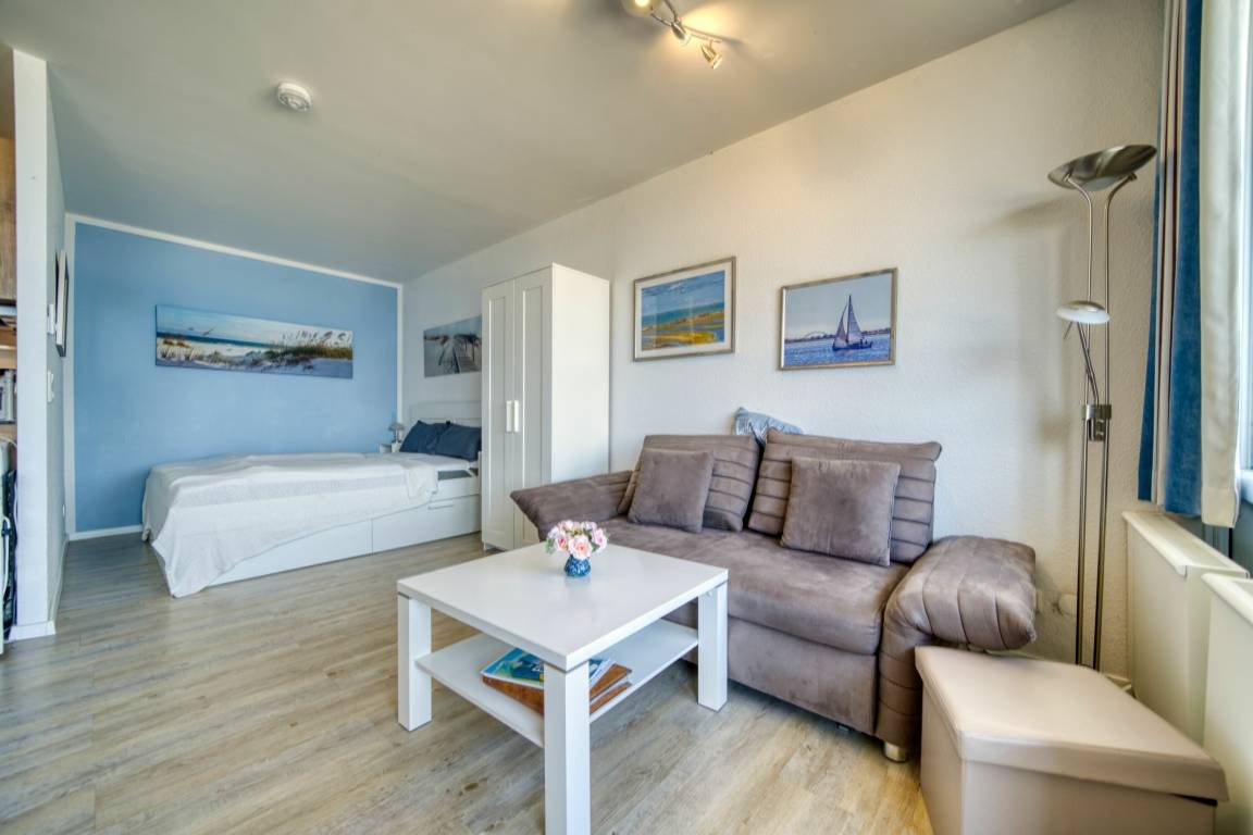 Die 36 m² große Nichtraucherwohnung ist für bis zu 2 Personen geeignet. Sie verfügt über Wohn-/Schlafbereich mit Doppelbett (160×200 cm), Küchenzeile mit Mikrowelle und Geschirrspüler, Duschbad und Balkon mit Ostseeblick. Fliegengitter, eigener Pkw-Stellplatz und gemeinschaftlicher Fahrradkeller sind vorhanden. Haustiere sind nicht erlaubt. Strand ca. 10 m, Ferienpark mit Geschäften, Gastronomie und Freizeitmöglichkeiten ca. 5 Gehminuten. Ideal für Paare, die Ostseeblick, zentrale Lage und Komfort schätzen.