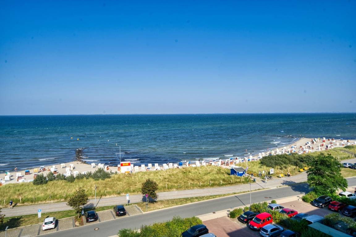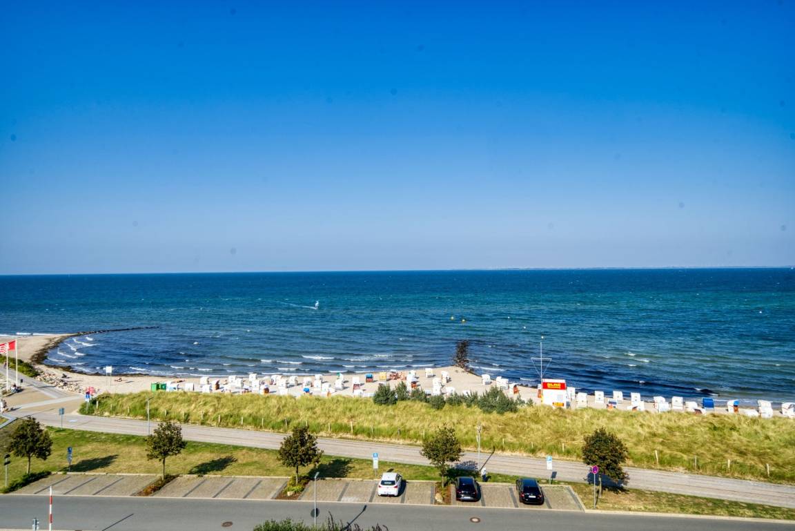 Das Appartementhaus Steinwarder 37 liegt auf der Dünenhalbinsel zwischen Ostsee und Binnensee, direkt gegenüber dem Hauptbadestrand. Die Wohnung befindet sich in der 6. Etage und bietet einen herrlichen Blick auf die Ostsee.