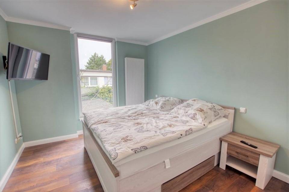 Die ca. 65 m² große Wohnung in der 1. Etage bietet Platz für bis zu 3 Personen. Wohn-/Esszimmer mit Schlafcouch und TV, offene Küche mit Backofen, Geschirrspüler, Mikrowelle und Kaffeemaschine. Separates Schlafzimmer mit Doppelbett und TV. Modernes Bad mit Duschkabine. WLAN vorhanden, PKW-Stellplatz hinter dem Gebäude.