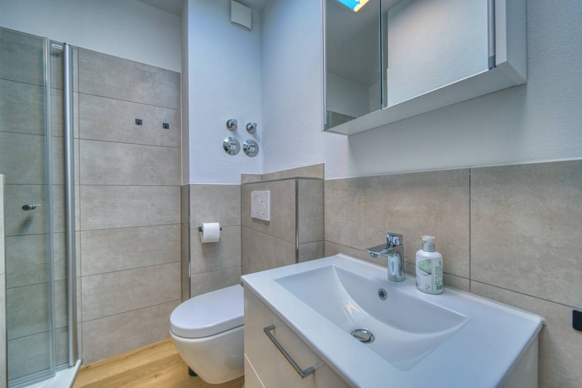 Badezimmer: Dusche, WC, Handtuchtrockner