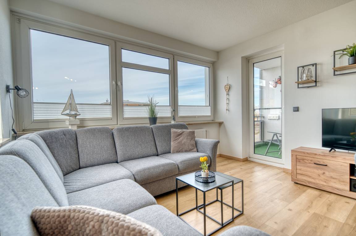 Moderne Ferienwohnung in der 3. Etage des Appartementhauses Aquamarina im Steinwarder 11, Heiligenhafen. Auf 42 m² Platz für bis zu 4 Personen, Balkon mit Ostseeblick – ideal für Familien, Paare oder Freunde. [nbsp]komplett renoviert.