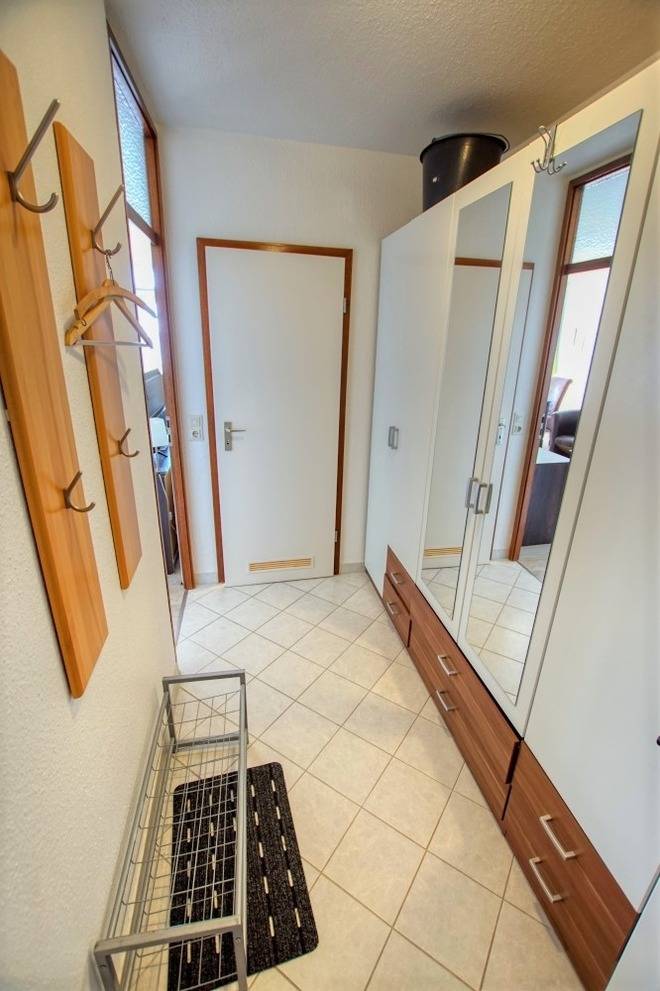 Wohnfläche 45 m², Wohn-Esszimmer mit Sofa, Flachbild-TV, Radio und Einzelbetten, separates Kinderzimmer mit Etagenbett. Küche komplett ausgestattet mit Kühlschrank inkl. Gefrierfach und 4‑Platten-Herd. Bad mit Dusche und WC. Balkon mit herrlicher Aussicht. WLAN inklusive. Nichtraucherwohnung, keine Haustiere, max. 4 Personen. Fahrstuhl und Fahrradräume vorhanden, Strand ca. 300 m entfernt, kostenloser Parkplatz.