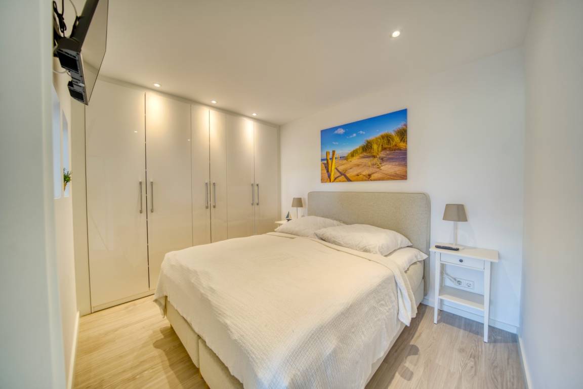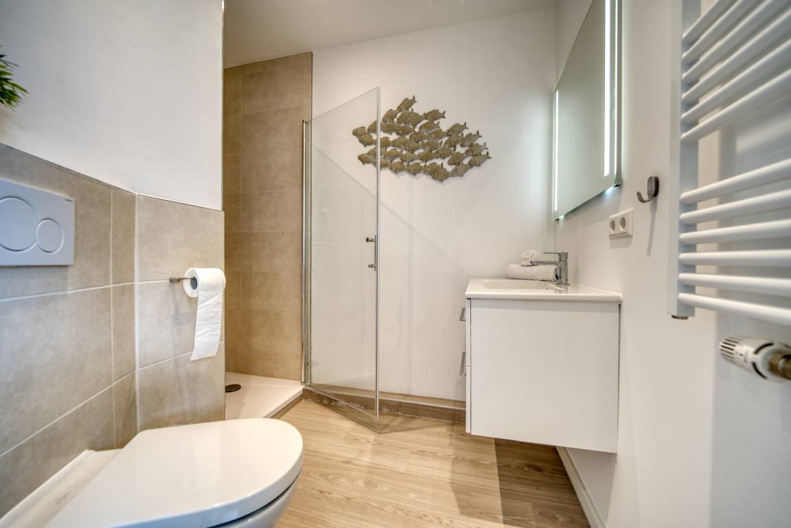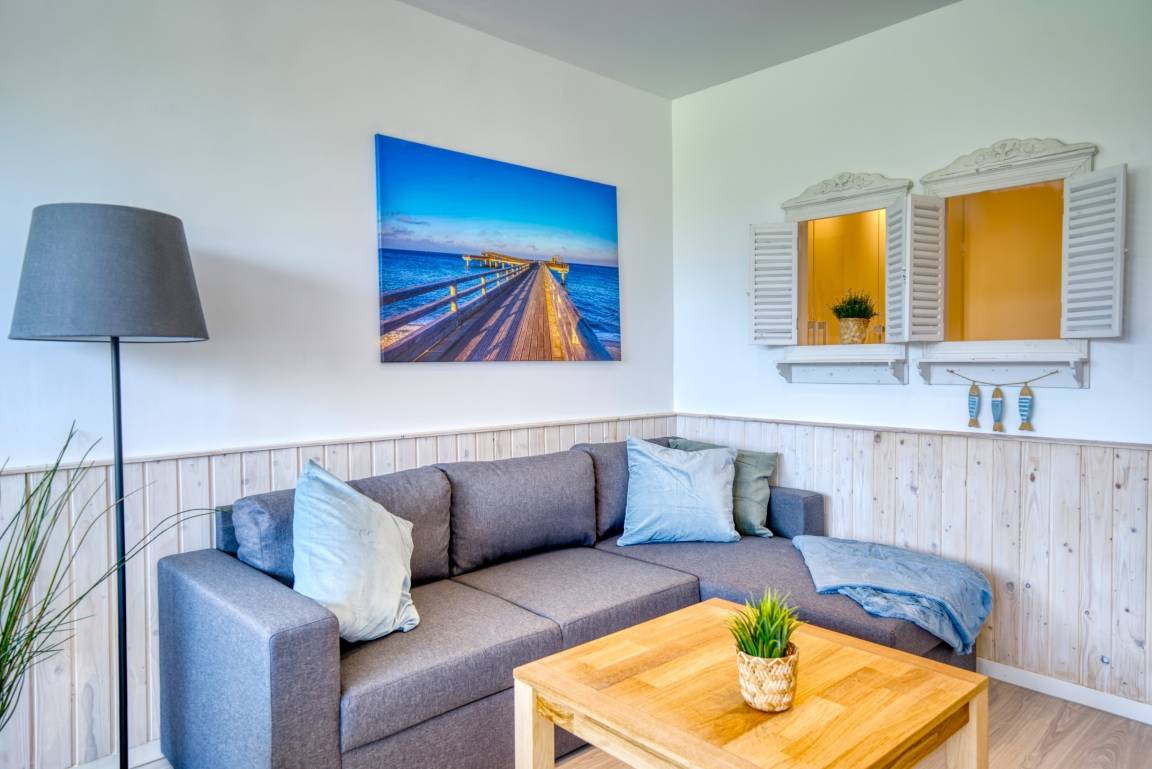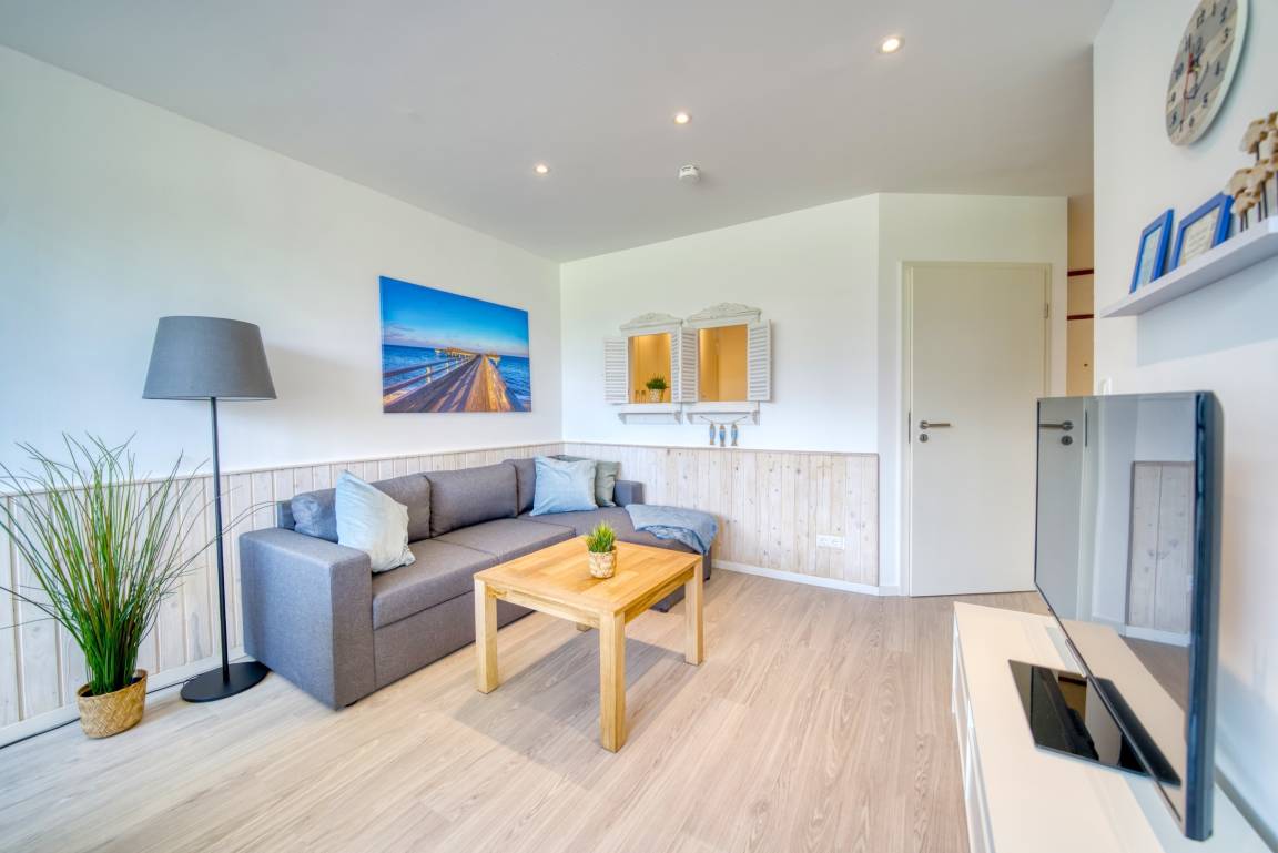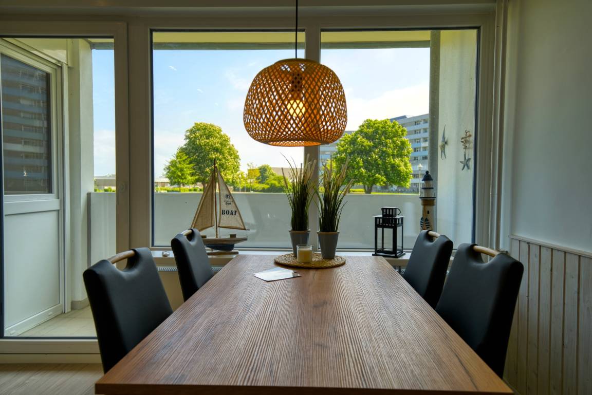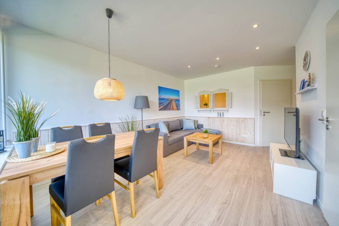 Diese wunderschöne Wohnung liegt im Haus H Ferienpark, im Erdgeschoss (Wohnung Nr. 10), mit Balkon zur Ostseite, der einen schönen Blick ins Grüne bietet. Wohnfläche 45 m², offener Wohnbereich mit Schlafcouch und Flachbild-TV, separater Elternschlafbereich mit Doppelbett und TV, Kinderzimmer mit Etagenbett. Küche hochwertig ausgestattet mit Ceranfeld, Backofen, Kühlschrank mit Gefrierfach, Spülmaschine und Kaffeemaschine. Modernes Bad mit großzügiger Dusche. Bonus: WLAN. Nichtraucherwohnung, keine Haustiere, Fahrradräume, ca. 300 m zum Strand, Parkplatz inklusive. Aktiv-Hus, Shops und Restaurants in unmittelbarer Nähe.