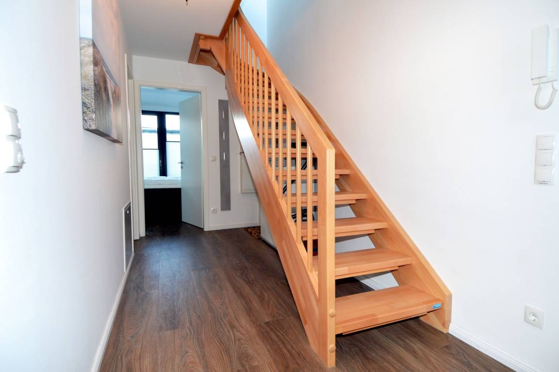 Auf einer Wohnfläche von insgesamt 64 m², verteilt auf zwei Ebenen (1. OG und Dachgeschoss), bietet die Wohnung ausreichend Platz für bis zu 4 Personen. Sie ist stilvoll eingerichtet und verfügt über eine Fußbodenheizung. Besonders der geschmackvolle Wohnbereich im Dachgeschoss lädt zum Verweilen ein und ist mit einem Fernseher und WLAN für Unterhaltung ausgestattet. Durch bodentiefe Fenster gelangt viel natürliches Licht in die Wohnung.