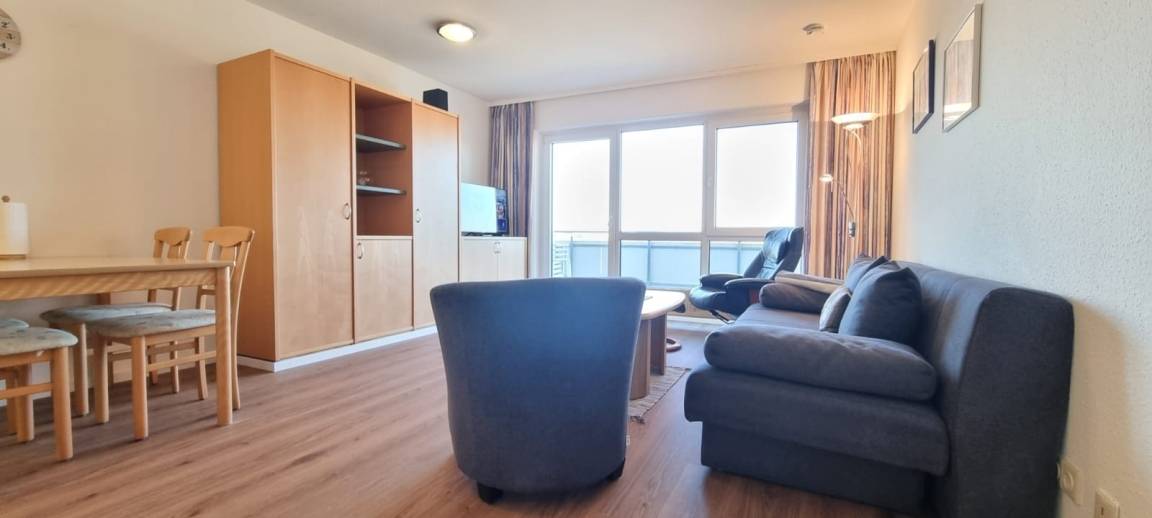 Das Appartement 73 in der Ostseeresidenz auf dem Steinwarder bietet die perfekte Grundlage für einen entspannten Urlaub an der Ostsee. Das standardmäßig eingerichtete 2-Zimmer-Appartement liegt auf der 4. Ebene und verfügt über einen möblierten Balkon mit Westausrichtung – ideal für gemütliche Abendstunden mit Sonnenuntergang.