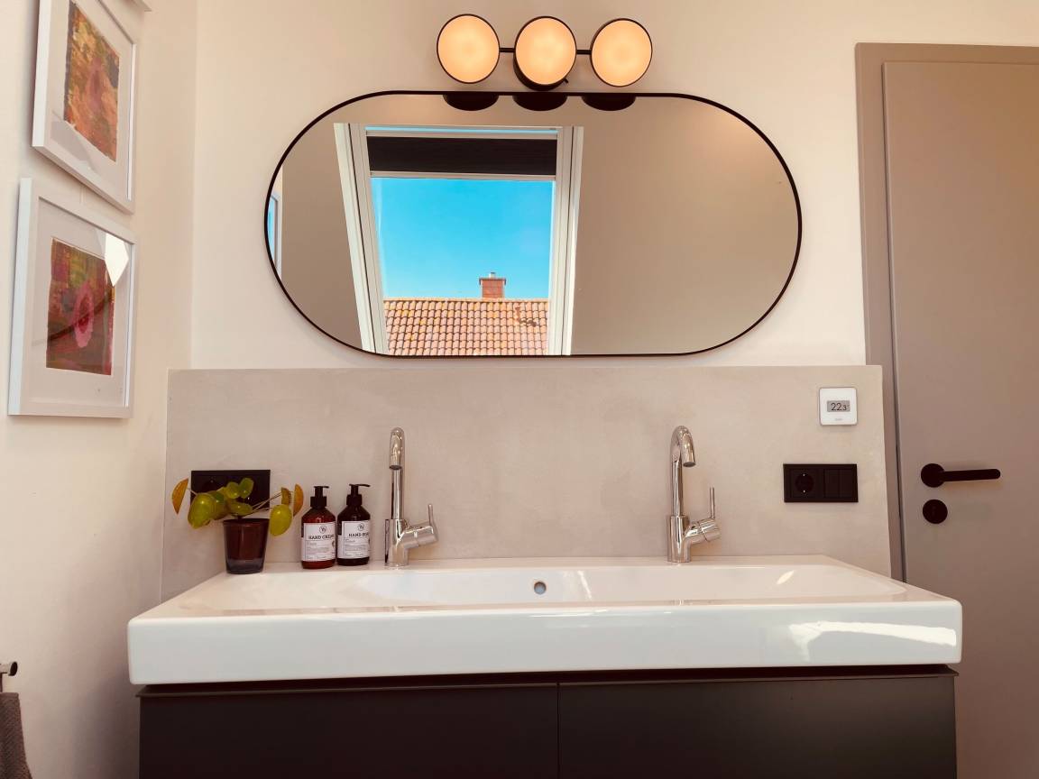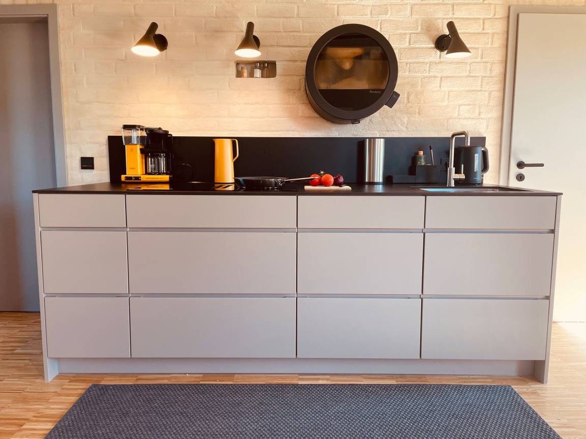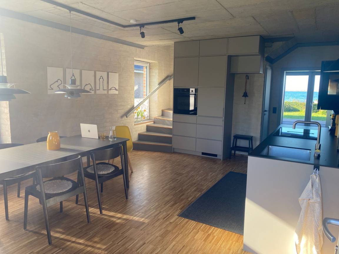 Das Ferienhaus ist modern und geschmackvoll eingerichtet. Der offene Küchen- und Essbereich lädt dazu ein, gesellige Abende mit der Familie oder Freunden zu verbringen. Die vollständig ausgestattete Küche lässt keine Wünsche offen: Hier finden Sie eine Kaffeemaschine für den perfekten Morgenkaffee, einen Toaster und Wasserkocher für ein schnelles Frühstück sowie einen Backofen und ein Cerankochfeld, um Ihre kulinarischen Fähigkeiten auszuleben. Der Kühlschrank mit Gefrierfach und der Geschirrspüler sorgen dafür, dass alles bestens organisiert ist und Sie sich voll und ganz entspannen können. Ein besonderes Merkmal ist der Kamin über der Küchenzeile (ohne Holzvorrat).