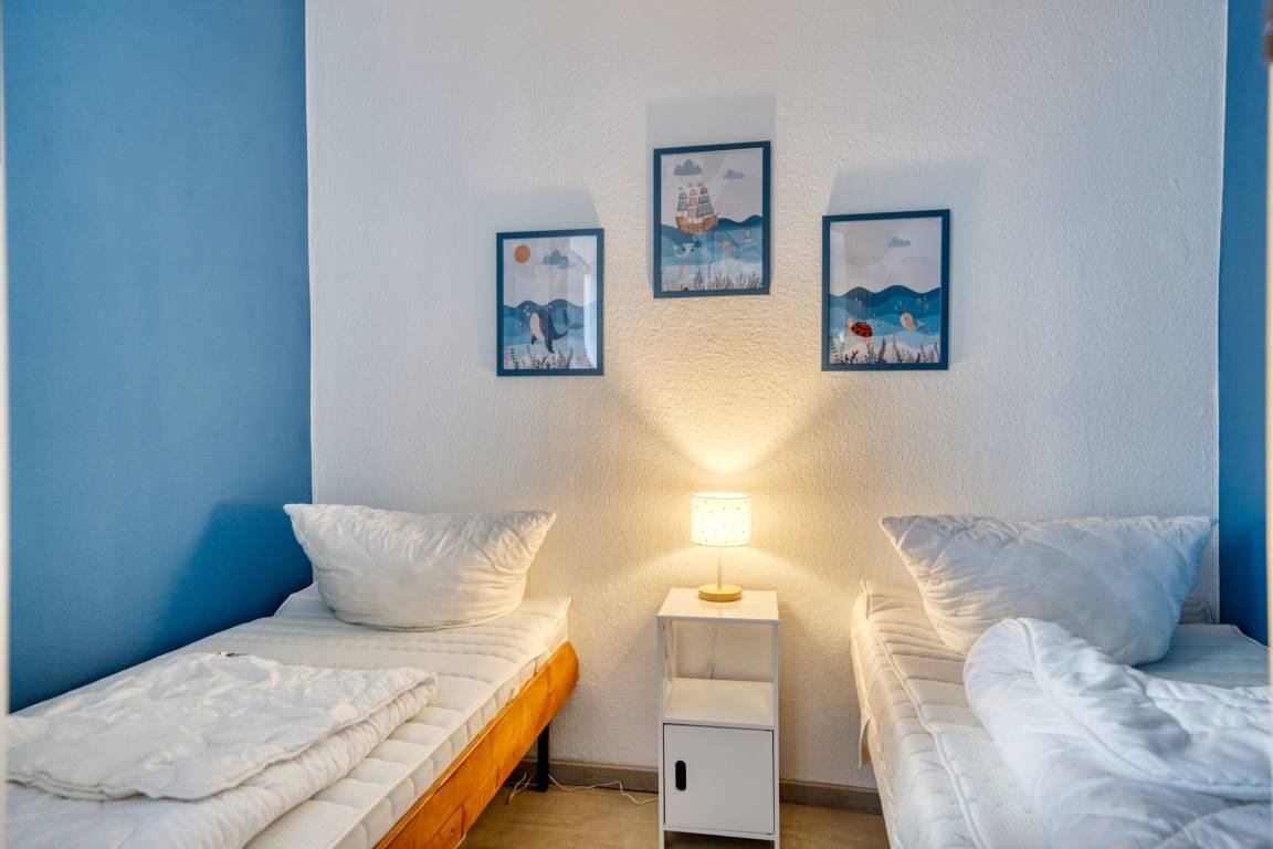 Die Wohnung verfügt über ein kombiniertes Wohn-/Schlafzimmer mit Doppelbett, Schlafcouch, gemütlichem Ecksofa und Flachbild-TV sowie ein separates Schlafzimmer mit zwei Einzelbetten. Der Essbereich befindet sich direkt am Balkon, der Boden ist mit Vinyl ausgelegt.